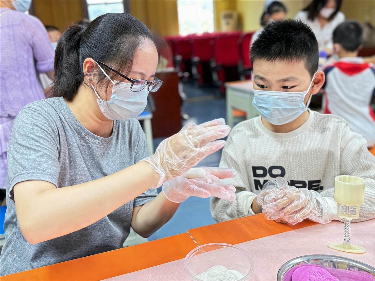 604班的蔡宸妈妈看着孩子认真的模样,笑着说:“平时很少陪孩子做手工,今天一起揉月饼,听她说想把月饼送给国庆还要坚守岗位,保护祖国的叔叔阿姨,我心里暖暖的。”同学们小心捧着和妈妈一起做的月饼,脸上笑出了小酒窝——这不只是甜滋滋的节日礼物,更是和家人的开心时光,藏着对中秋、对祖国的小小心意。