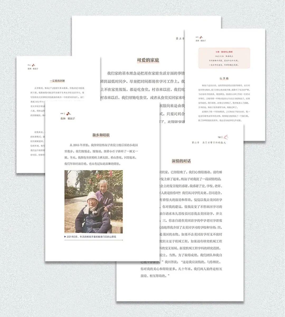 书中讲述了许多珍贵往事,包括两人十年恋爱中通过书信往来、以书传情的经历,以及杨叔子寄红豆表达心意的浪漫故事。徐辉碧分享,两人相识于高中,大学再联系上,那时他们一人在北京,一人在武汉,开启了长达10年的书信交往。在书信中他们谈工作、谈科研,却鲜少谈爱情,更是从未说“我爱你”。杨叔子第一次表达心意是用一本文学著作,第二次则是在春天的时候去捡红豆,并将两颗红豆放在书信中寄来,还将王维的诗词《相思》随信寄来。而徐辉碧还曾担心两人专业不同,无法促进工作而考虑是否接受心意。
