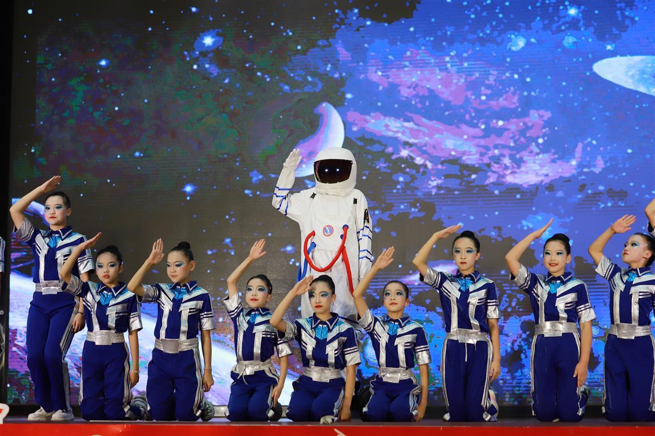 晚会气氛热烈,艺术熏陶与家国情怀相互激荡。武汉歌舞剧院演绎炫舞《凤舞楚天》、讴歌深情的《为了谁》等经典曲目,展现了精湛艺术水准与时代精神。华宜学子同台献艺成为亮点:气势磅礴的集体歌舞《山河》、刚劲有力的武术表演《中华少年》,以及充满想象力的情景舞蹈《你好,太空》,生动体现了华宜学子昂扬向上的精神风貌和对祖国山河、科技未来的深情礼赞。