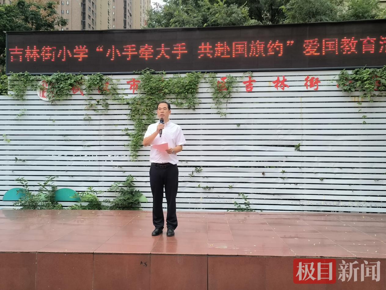 升旗仪式后,吉林街小学党总支书记罗强发表致辞。他表示,此次大手牵小手同升国旗、同唱国歌,是一次“童心”与“青春”的深度对话,希望通过此次活动,让同学们亲眼见证、亲身体验中感悟国旗的庄严与祖国的强大,将爱国主义的种子深深根植于心田。