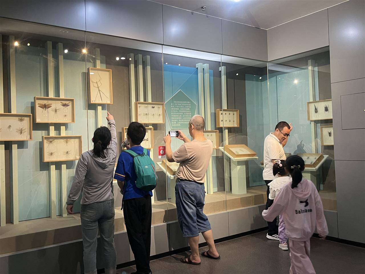 10月1日,国庆节首日,早上8点半,华中农业大学博物馆就迎来了前来参观的游客。陆陆续续,诸多家长带着孩子前来参观,从美丽的蝴蝶标本到珍贵的国家一级保护动物中华鲟,他们在馆内开启一场奇妙的科学探索之旅。