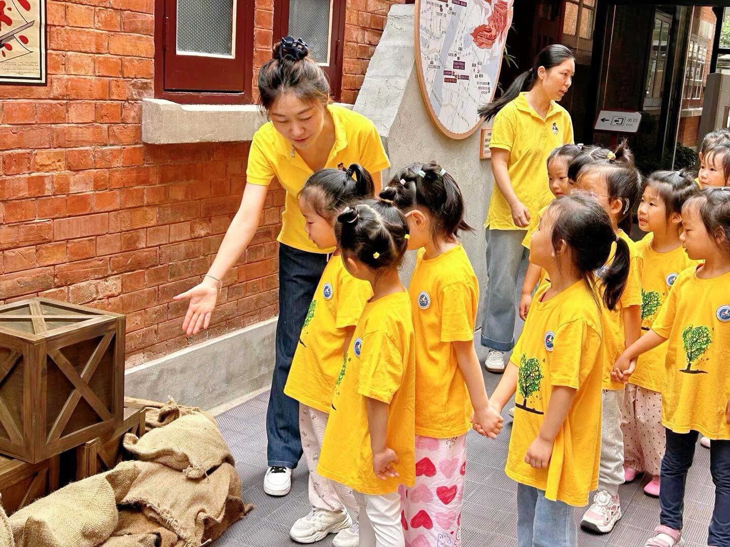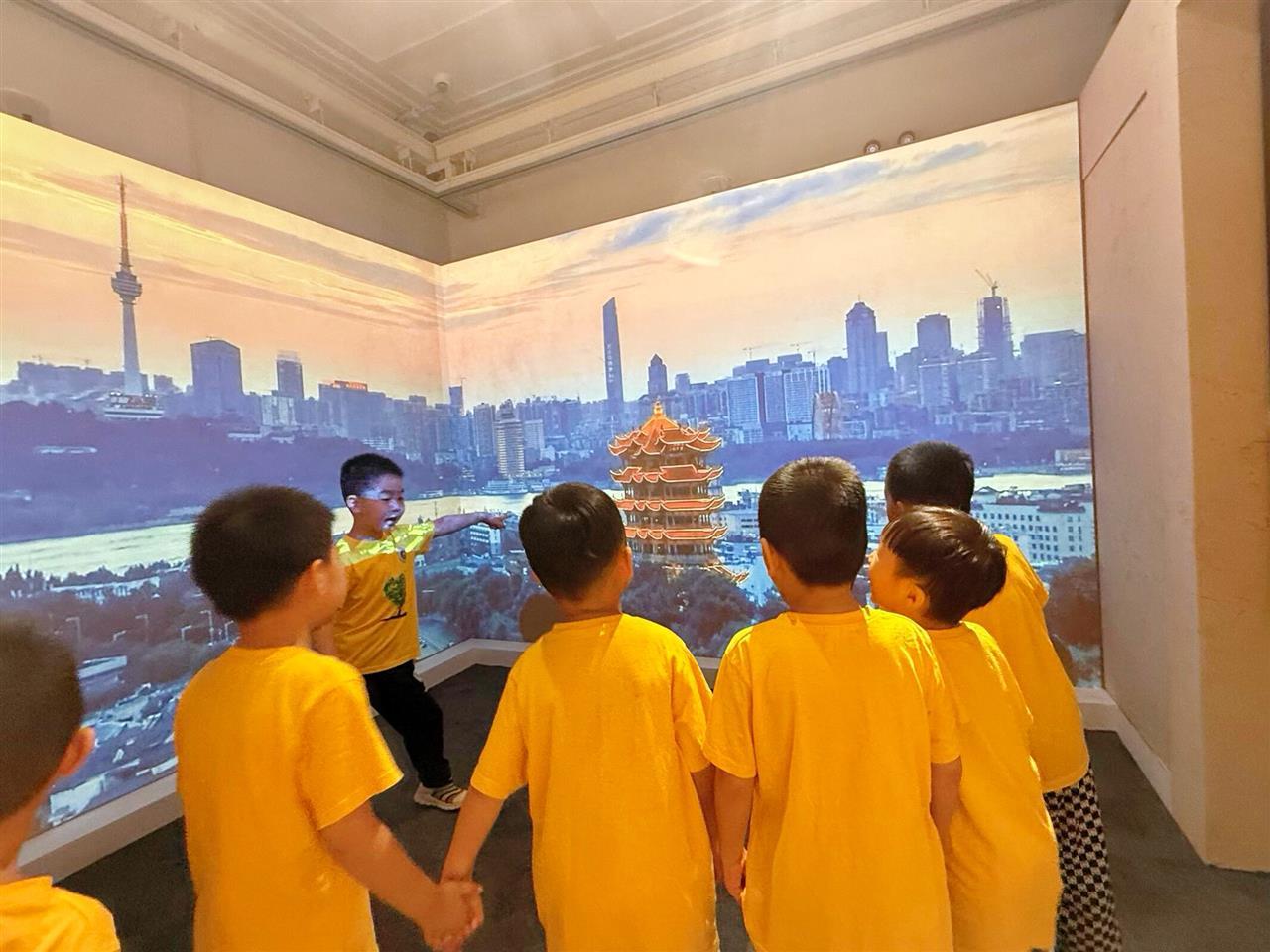 中大班的孩子们参观了武汉中共中央机关旧址纪念馆中的“烽火流金 江城壮歌——武汉抗战遗址展”。回到幼儿园后,中大班的孩子们化身“小小讲解员”对小班的弟弟妹妹们进行讲解。这种大带小式的参观体验,让爱国主义教育变得更加生动和深刻。