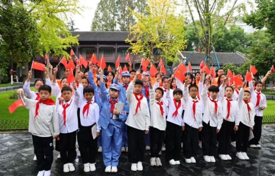 在“思园”陈毅元帅雕像前,宣讲团成员铁德铭讲述学校缔造者的革命事迹与思园的历史渊源。研究生党员、团员与小学生队员整齐列队,庄严重温入党、入队誓词。雨水打湿衣衫,却更显信念坚定。铿锵有力的誓言在雨中回荡。
