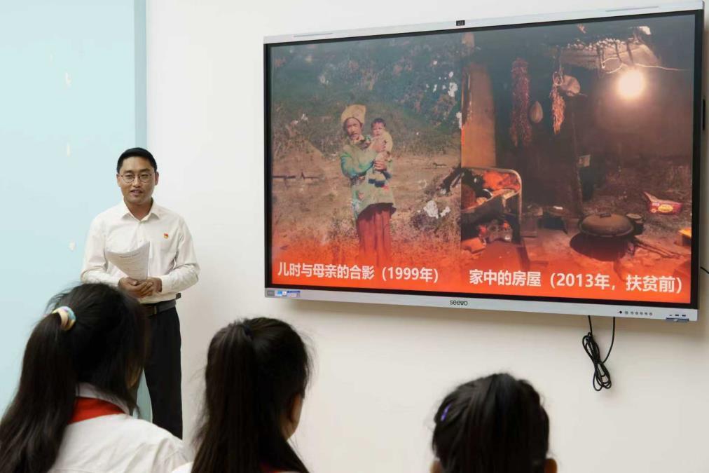 研究生宣讲团成员苏正民来自四川大凉山,他向师生讲述了他一个从辍学的放羊彝族娃成长为一名硕士研究生、从家里的毛毡房到今天的砖瓦房、从一名受助者成长为一名助人者的故事,他说是党的好政策、是到他们山里支教的老师、还有许许多多的帮助过他的老师同学一直在温暖他、帮助他。