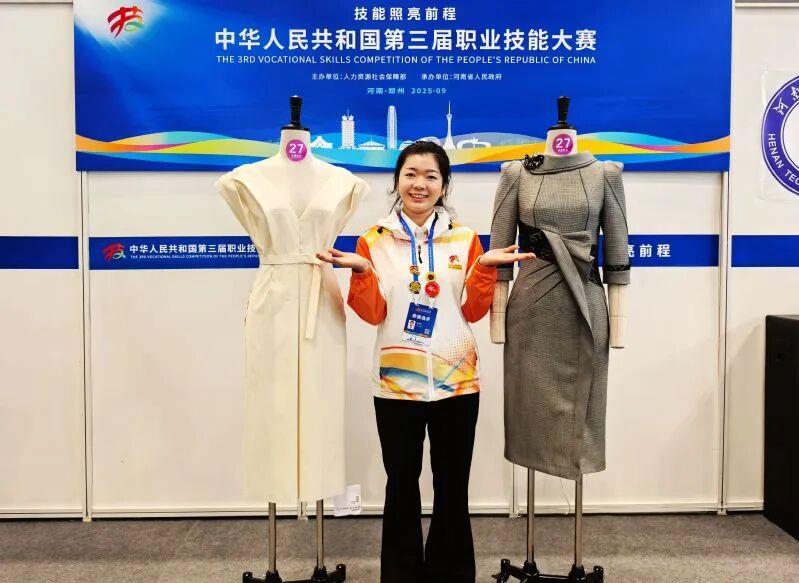 这份对服装设计的热爱与执着,成为张依依择校时的坚定指引,上大学时她毫不犹豫选择服装专业,入学后更主动投身各类技能竞赛,在实战中打磨本领、积累经验。