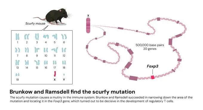 布伦科与拉姆斯德尔发现scurfy小鼠体内的变异基因Foxp3
