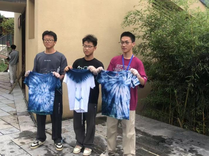 除了打糍粑,《土家苞谷粑粑制作》《古法蓝染》等课程,也成为民族文化交流的“桥梁”。蓝染课程从文化溯源到实践操作,学生们学习以蓝草为原料,通过浸染、氧化等工序制作出独特的青蓝色纹样,于是白色T恤就在学生手中逐渐变幻色彩和图案,传统匠人的智慧与现代审美在此交融。