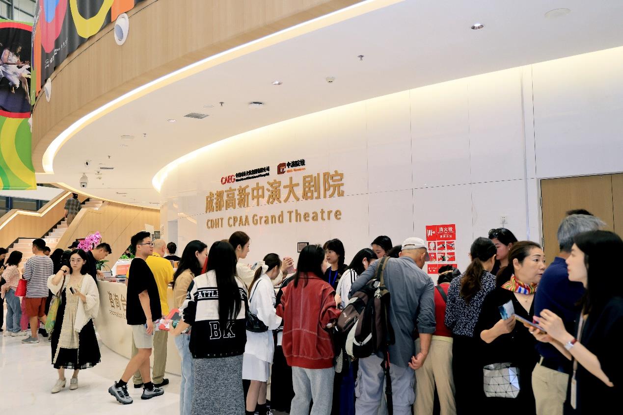 10月8日晚的成都高新中演大剧院内人潮涌动、座无虚席。伴随着古朴而恢宏的音乐,舞剧《乐和长歌》缓缓拉开帷幕。来自湖北的舞者们以刚柔并济的舞蹈语汇,结合极具楚文化特色的乐器、服饰与舞美设计,交织出一幅浓郁的楚地礼乐画卷,生动演绎了浪漫瑰丽、神秘奇幻的楚式美学。现场观众沉浸在这场跨越千年的对话中,掌声随着剧情的推进此起彼伏。“这是一场让人震撼的楚文化视听盛宴!”一位来自成都的观众在演出结束后激动地表示,他认为舞蹈表演极具感染力,叙事表达富有层次,舞台意境深远悠长,是一部让人感动、值得回味的精品之作。