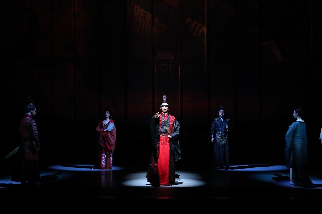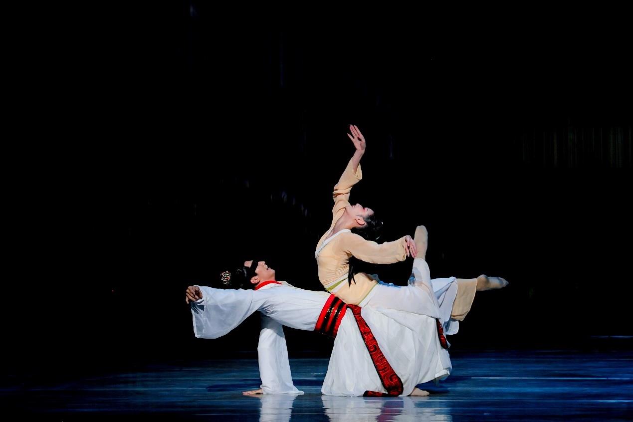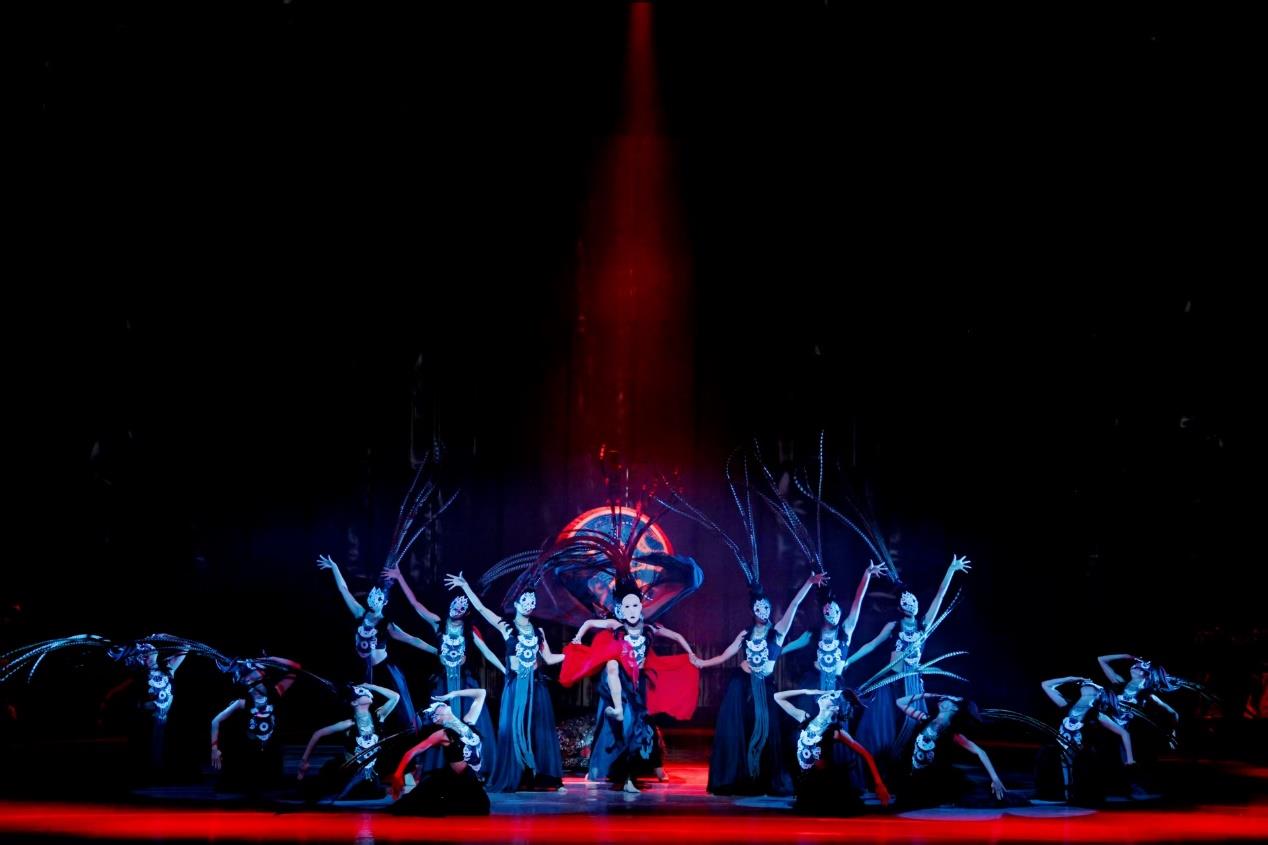 舞剧《乐和长歌》以春秋时期为历史背景,取意“大乐与天地同和,大礼与天地同节”,将楚地文化巧妙融入舞蹈叙事,讲述了一个关于爱与恨、忠与信、个人命运与家国选择的动人故事。剧目不仅展示了浪漫瑰丽的楚式美学,更艺术化地展现了楚人开拓进取、追求和平、倡导和谐的生命哲学与文化气度。