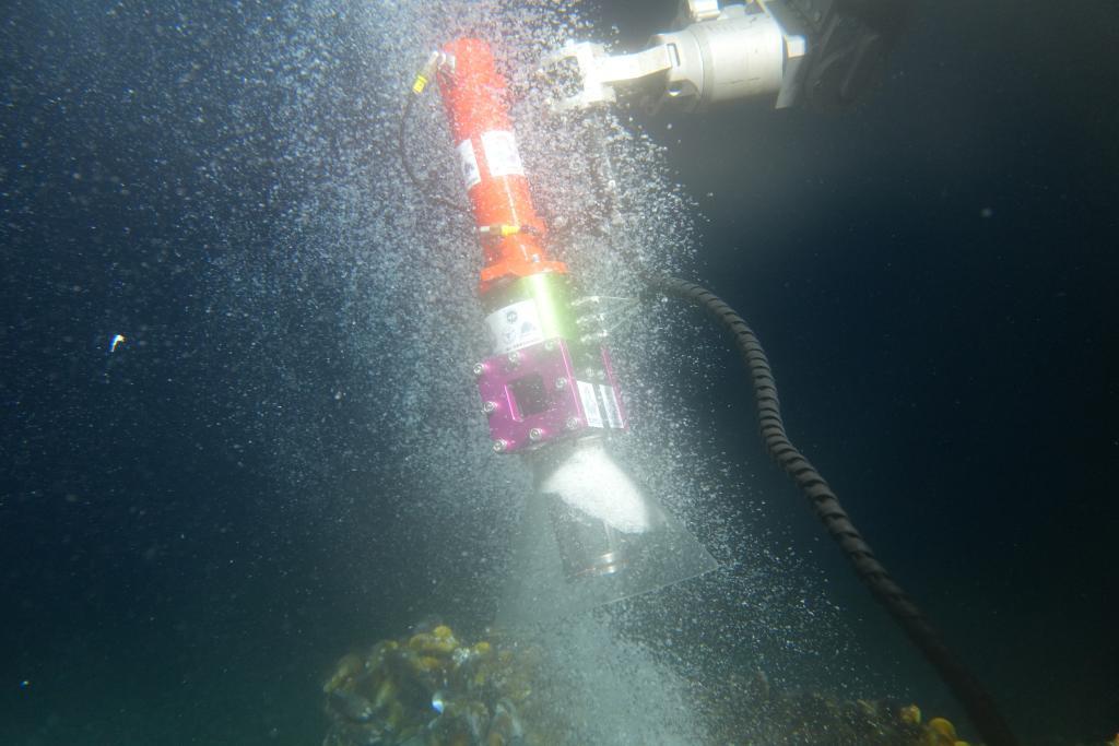 9月18日,采火装置在海底冷泉喷口采集可燃冰。新华社发(张亚念 摄)