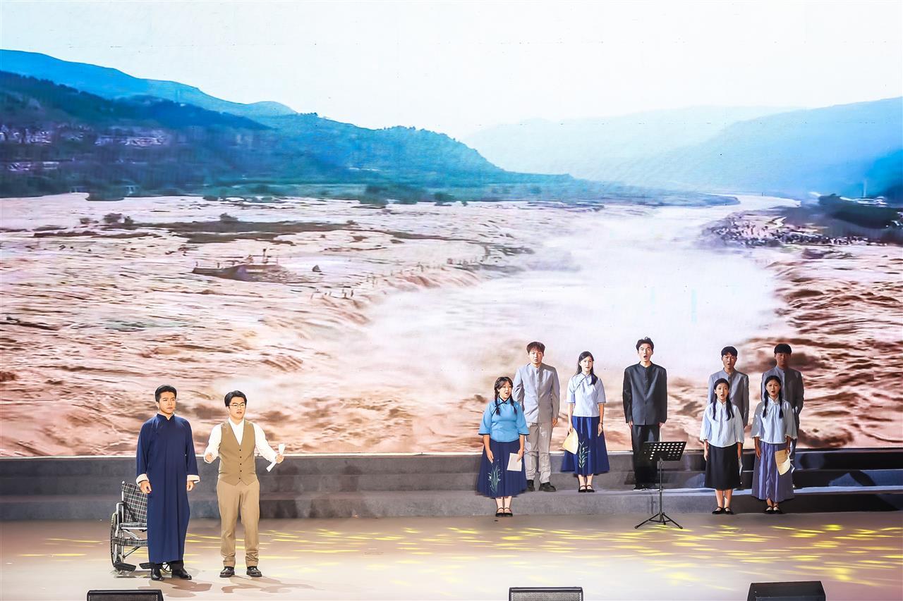 晚会原创语言类节目《桂影·黄河》聚焦百廿校史中的光辉一页,通过四幕话剧,融合合唱、说唱等元素,深情回溯了华中师范大学校友、诗人光未然在民族存亡之际,以笔为枪创作出《黄河大合唱》、《五月的鲜花》等不朽经典的峥嵘岁月。其中,第四幕中全体师生齐声唱响《黄河大合唱》,致敬并再现了1999年华师举办纪念《黄河大合唱》60周年暨迎新世纪万人演唱会的场景,深刻诠释了华师人在国家危难时的责任担当与家国情怀。现场观众沉浸于用青春与热血铸就的历史,深切体悟先辈保家卫国的坚毅决心与和平年代的来之不易。