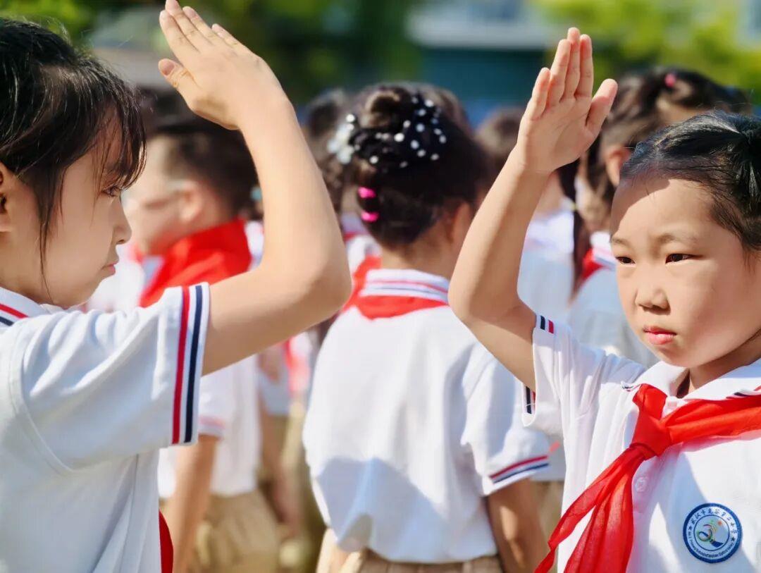 最后,在大队辅导员黄老师的带领下,全体队员发出“时刻准备着”的呼号。这不仅是响亮的回答,更是所有光谷二小少先队员前进的号角。