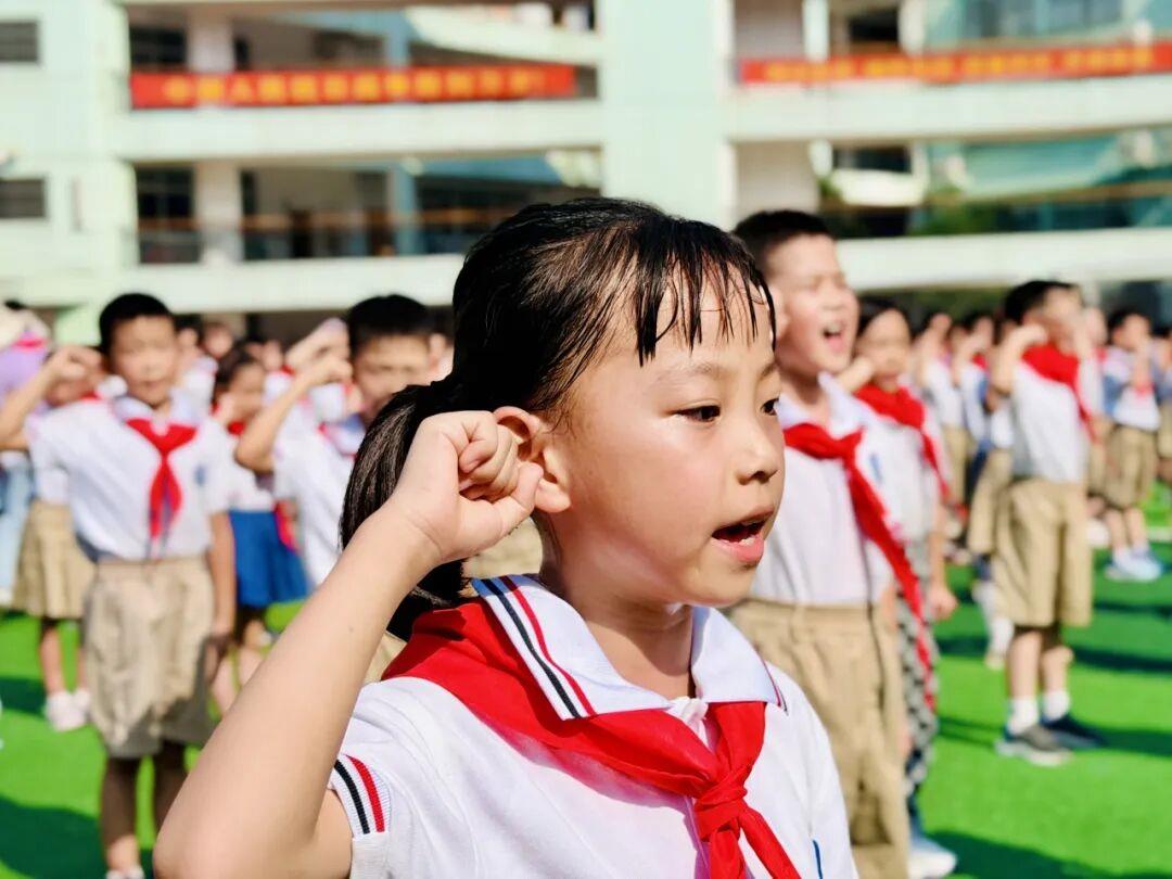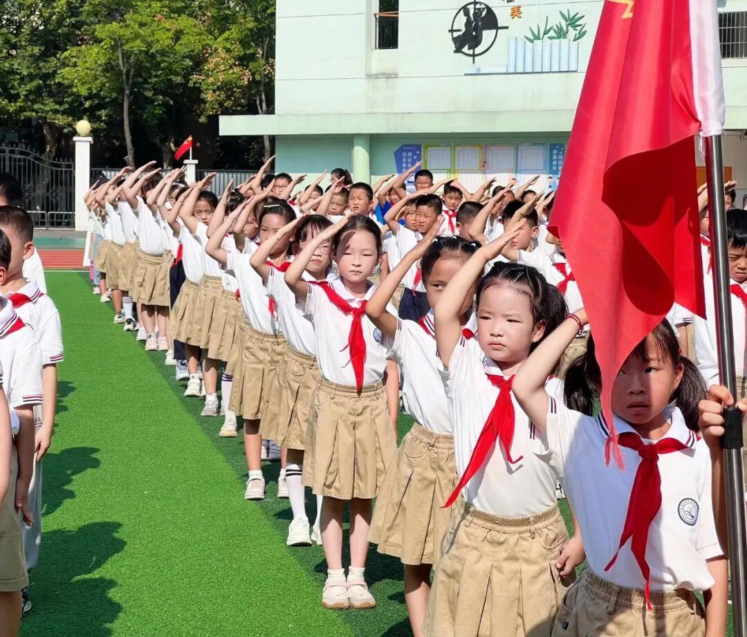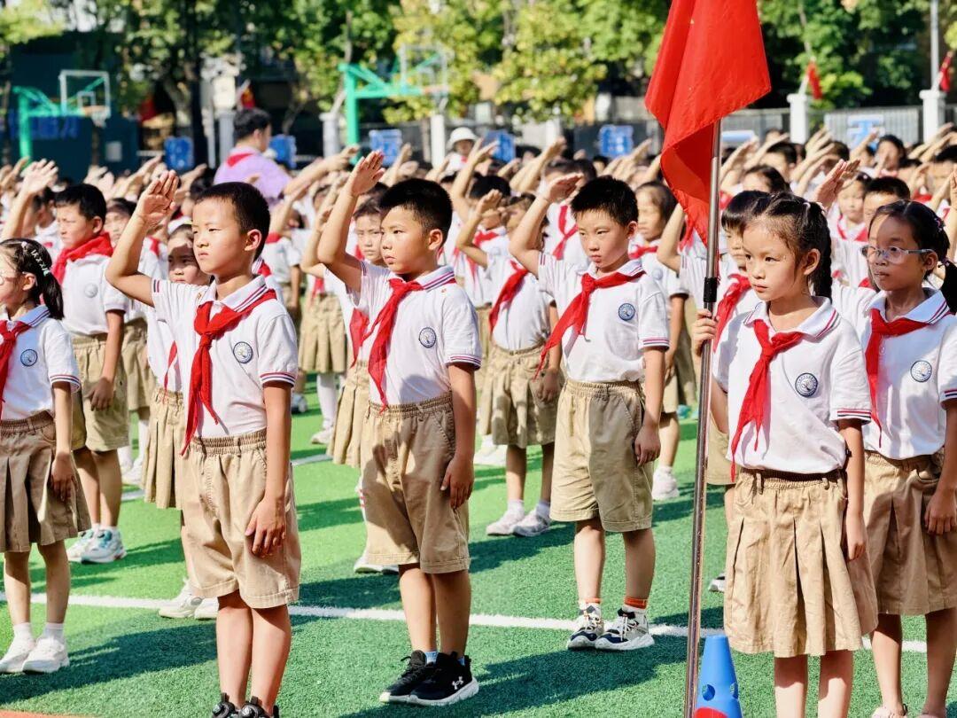 “出旗,敬礼!”在全体队员专注的目光中,队旗庄严出场。随后,嘹亮的《中国少年先锋队队歌》响彻会场,唱出了队员们心中的光荣与梦想。