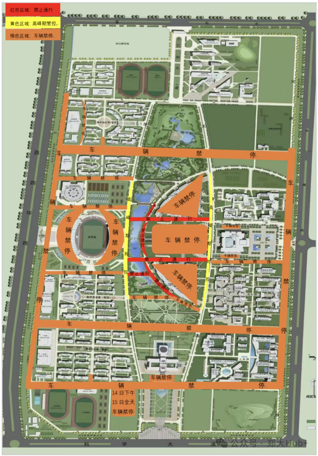 记者13日从郑州大学中国国际大学生创新大赛(2025)安全保卫组了解到,为确保中国国际大学生创新大赛(2025)期间校内交通顺畅,郑州大学计划从10月12日14:00至15日18:00对主校区校园内部机动车和非机动车进行分区域临时管控。内容如下: