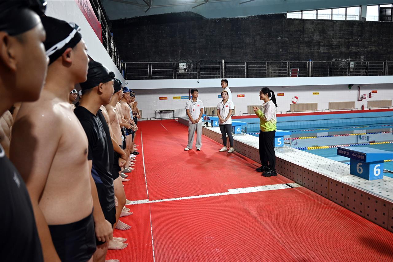 活动最后,刘蕙瑕前往游泳馆观摩学生游泳课。她与同学们亲切互动,鼓励大家“在水中掌握平衡,就像在生活中面对挑战,需要反复练习、永不放弃”。
