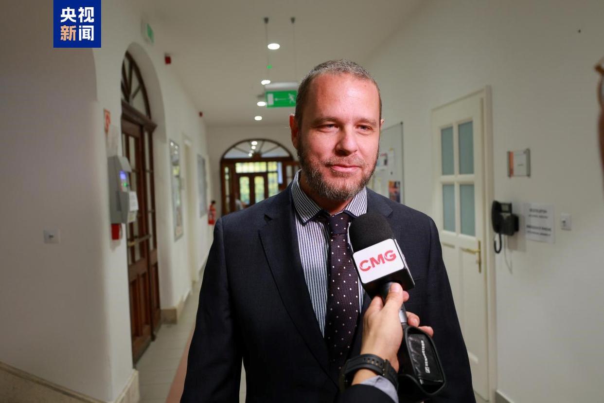 △匈牙利青年伽尔菲接受总台记者采访