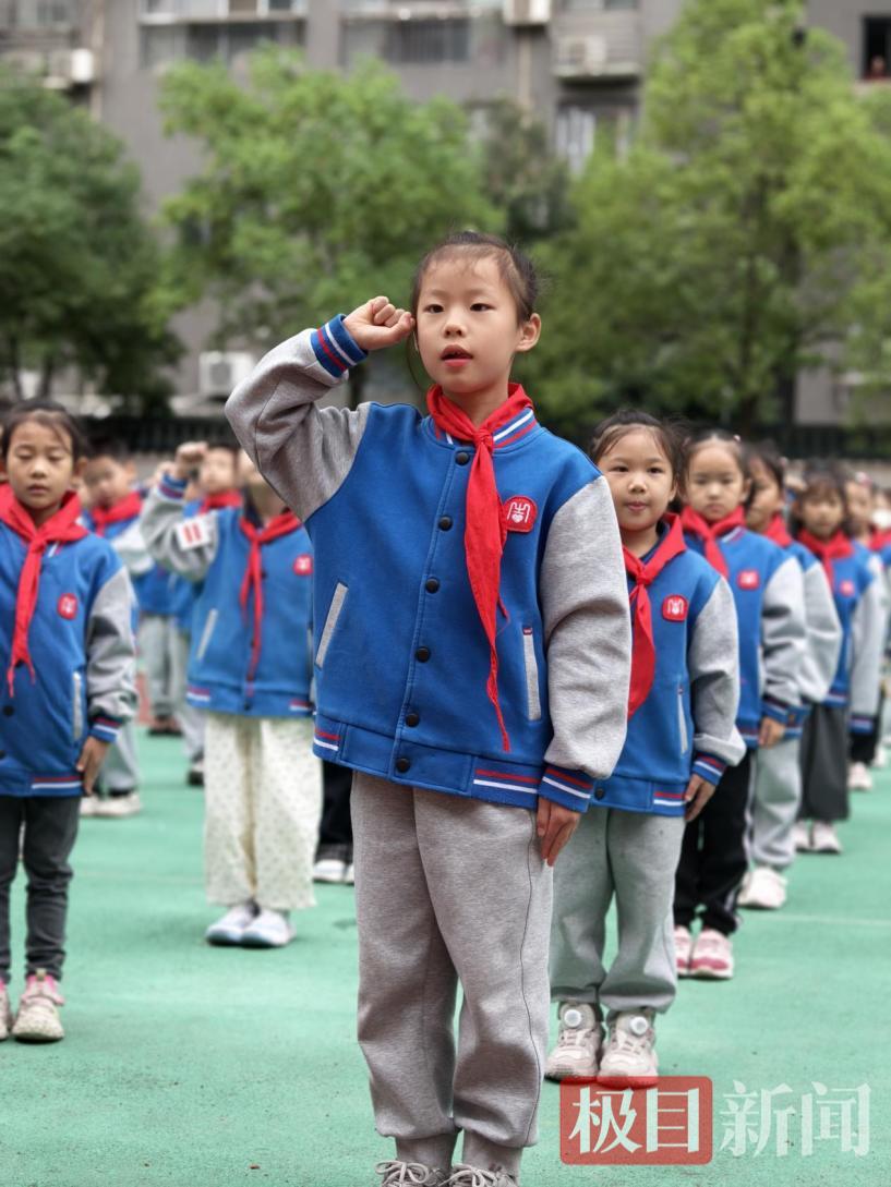 10月13日,在第76个中国少年先锋队建队日到来之际,武汉市青山区吉林街小学以“强国有我,争当新时代好少年”为主题,隆重举行少先队入队仪式,邀请全国退役军人报告团成员、武钢退休干部陈春喜走进校园,以红色宣讲为新队员系好“人生第一粒扣子”,让红色基因在队旗飘扬中代代相传。