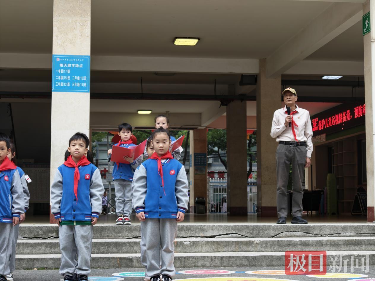 仪式的重要环节中,退役军人陈春喜同志为全体队员带来红色宣讲。作为中共党员、武钢退休干部,陈春喜身兼青山区平安建设宣传使者、武汉市老兵报告团成员等多重身份,常年扎根40个社区开展党史、国史、军史宣讲。他以生动的故事讲述革命先辈的奋斗历程,结合自身经历勉励队员们:“红领巾是红旗的一角,承载着革命先辈的期望,你们要从小热爱党、热爱祖国,努力学习知识,将来成为建设祖国的栋梁。”质朴的话语、真挚的情感,让队员们深受触动,现场掌声不断。