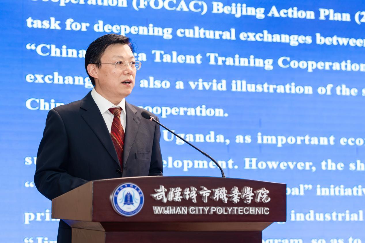 武汉市委外办副主任李军、湖北省教育厅对外合作交流处处长梁薇分别肯定了学校作为教育部“未来非洲中非职业教育合作计划”成员单位,连续11年开展对非职教培训的成果。梁薇表示,学校不断优化国际化办学机制,已成为湖北职业教育“走出去”的重要力量。