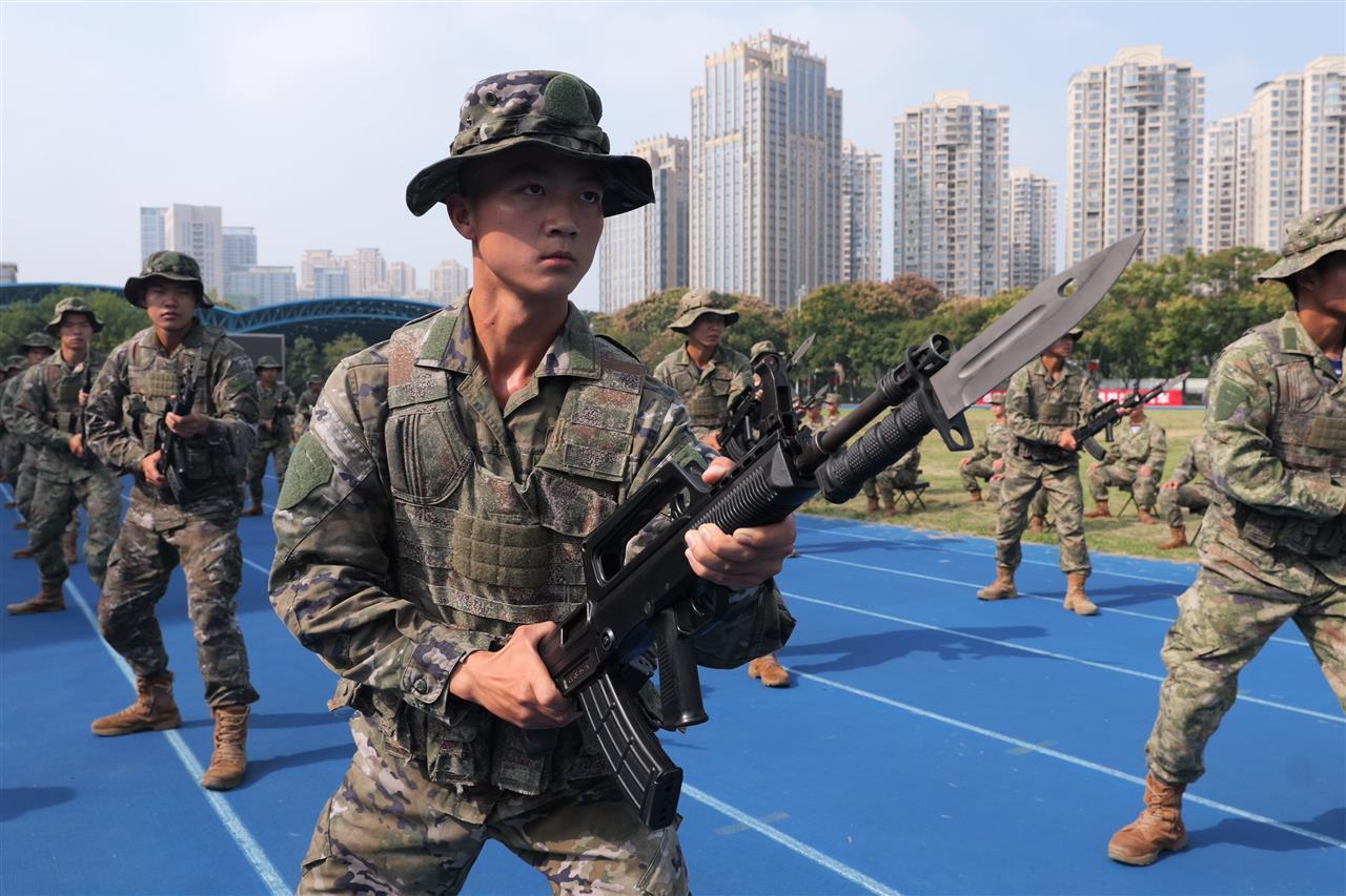 突然,现场警报声响起,为解救被困“人质”,特战小队火速集结,上演堪比电影大片的营救行动……战术综合演练环节将现场氛围推至高潮。只见队员们配合默契、动作连贯,先后完成战术搜索、无人机侦察、无声击杀、手榴弹投掷、轻武器射击及受伤“战友”抢救搬运等课目,过硬的战术素养赢得现场阵阵掌声。“训练中我们每一个动作都反复打磨,就是想以最好的状态迎接授衔,扛起这份军人责任。”参与特训的新学员施兴江说。