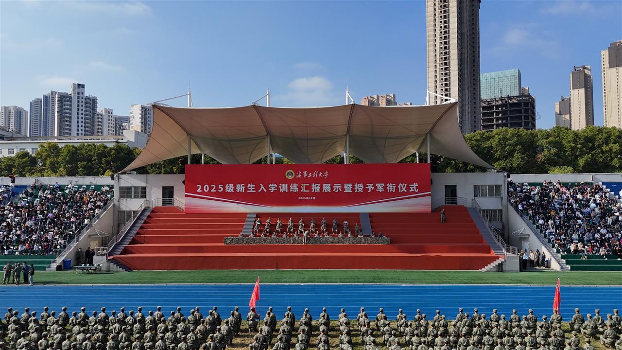 10月14日上午,海军工程大学操场上旌旗猎猎、气氛庄重,2025级新生入学训练汇报展示暨授予军衔仪式在此拉开帷幕。千名新学员褪去青涩、身着戎装,在铿锵誓言与嘹亮军歌中接过象征责任与使命的学员肩章,完成从“准军人”到军校学员的庄严蜕变,迈出军旅生涯关键一步。