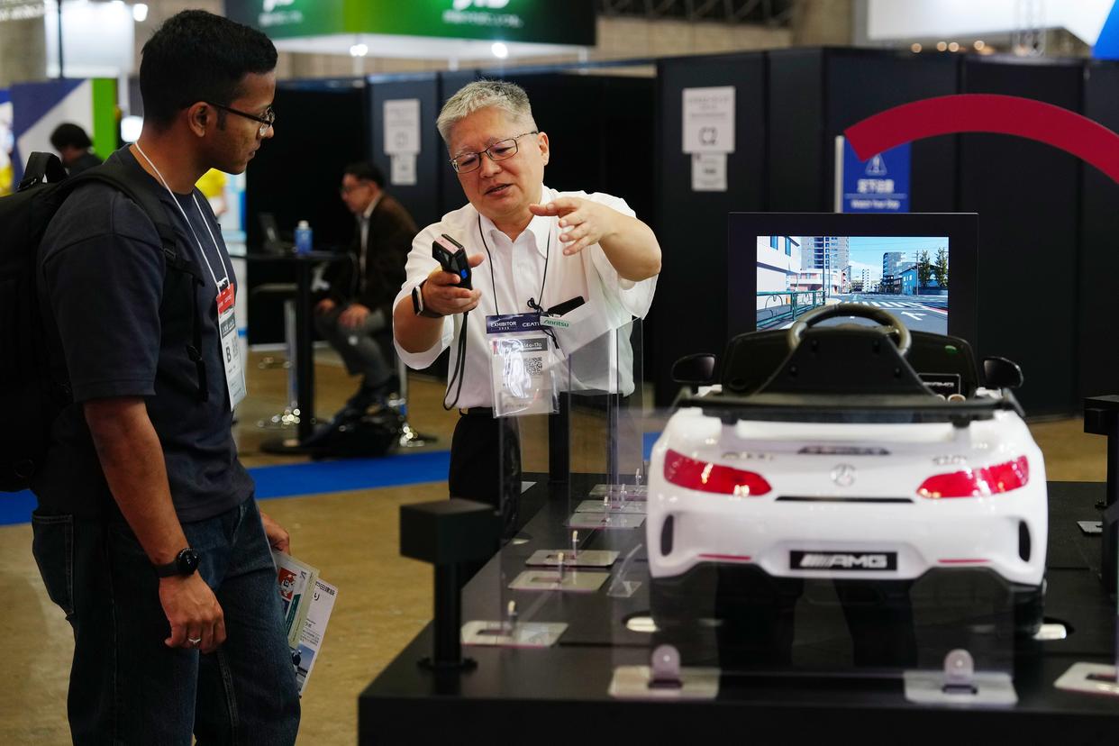 10月14日,在日本千叶县,工作人员在2025年日本高新技术博览会上向参会者介绍智能驾驶技术。新华社记者 贾浩成 摄