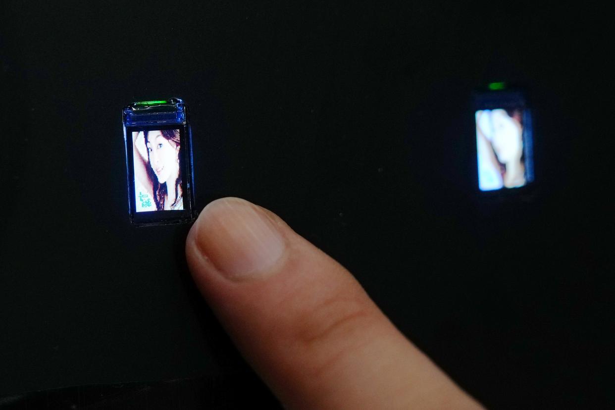 这是10月14日在日本千叶县举行的2025年日本高新技术博览会上拍摄的中国贵德集团的0.49英寸显示屏。新华社记者 贾浩成 摄