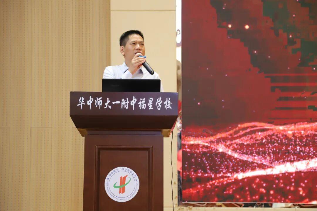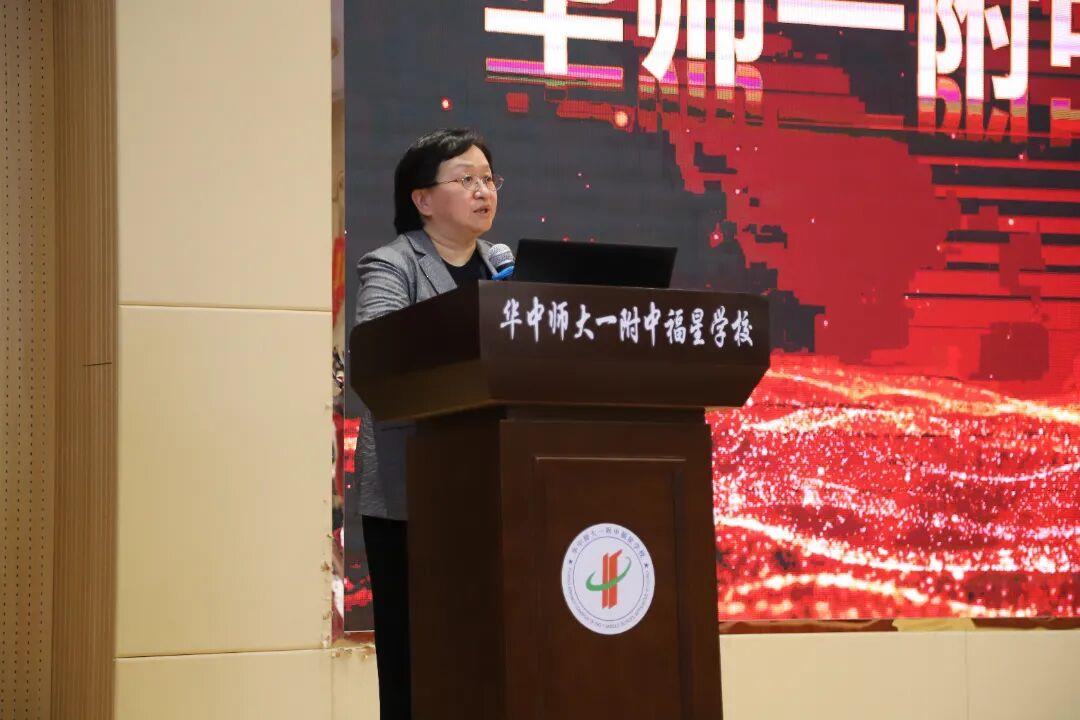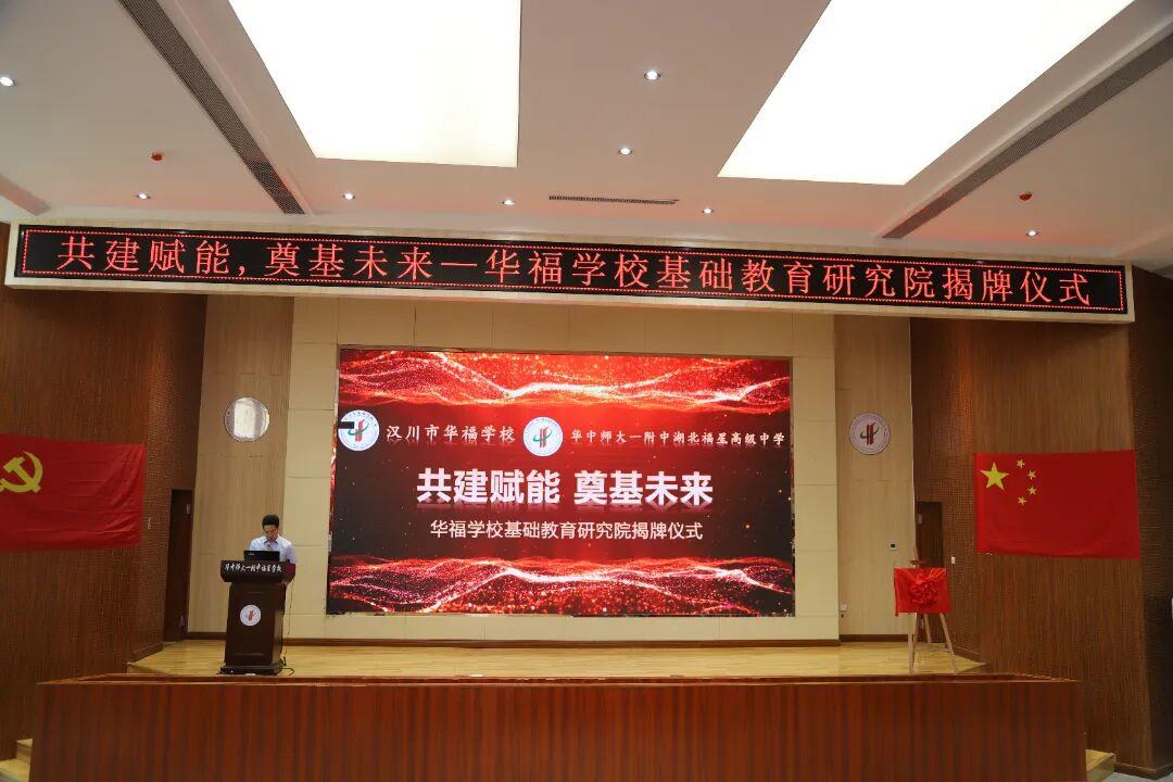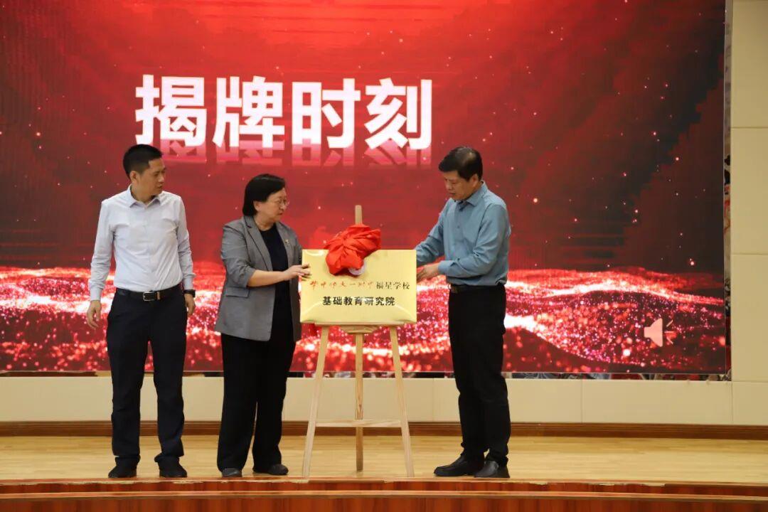 在与会嘉宾的共同见证下,总校校长、教育局领导与福星学校校长一同为“华中师大一附中福星学校基础教育研究院”揭牌。
