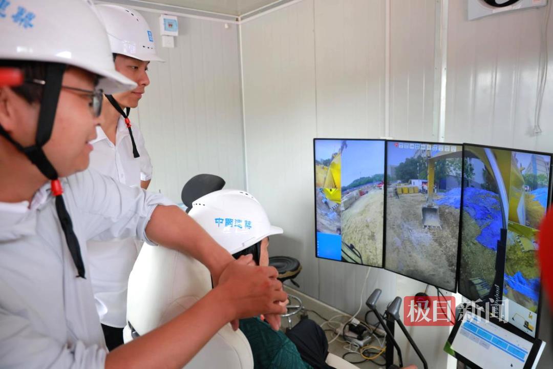 “传统挖掘机作业效率受限于操作员经验,而无人挖掘机通过激光雷达和北斗定位系统,不仅可实现24小时不间断作业,土方开挖精度还能控制到厘米级,安全性与作业效率均大幅提升。”吏善伟向学生们介绍,该设备是施工单位今年新引进的智能装备,已在多个大型项目中应用。学生们围在操控台前,观察屏幕上的三维施工模型和实时作业数据,不时就“无人设备如何应对复杂地形”“故障时的应急处理流程”等问题与技术人员交流,对智能建造技术表现出浓厚兴趣。