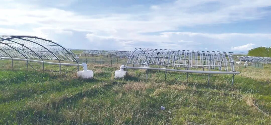 论文共同作者、北京林业大学草业与草原学院讲师柯玉广告诉《中国科学报》,干旱模拟设施就是一种特制的遮雨棚。其采用钢管支撑,顶部搭建弧形拱棚结构,上方覆盖透明的聚碳酸酯板,在允许阳光透过的同时,将降水偏导到实验区外,减少地表接收到的降水量,从而模拟干旱。