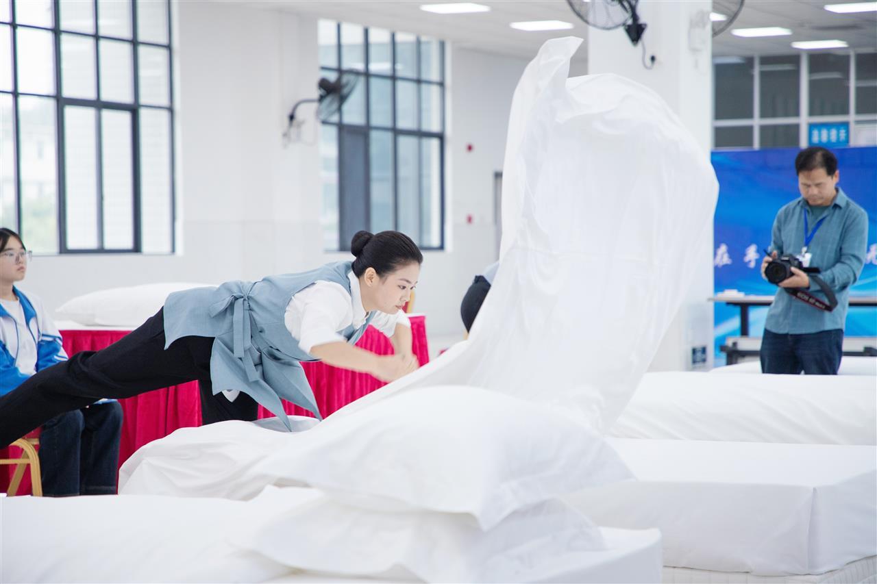 近年来,武汉市中职技能大赛持续优化赛项设置,强化标准对接行业需求,推动教学过程与生产过程深度融合,营造崇尚技能的社会氛围。本次酒店服务赛项不仅是一次技能的较量,更是职业教育对接产业、培育高素质服务人才的重要平台,在细节中诠释了“服务之美、技能之精”的职业精神。