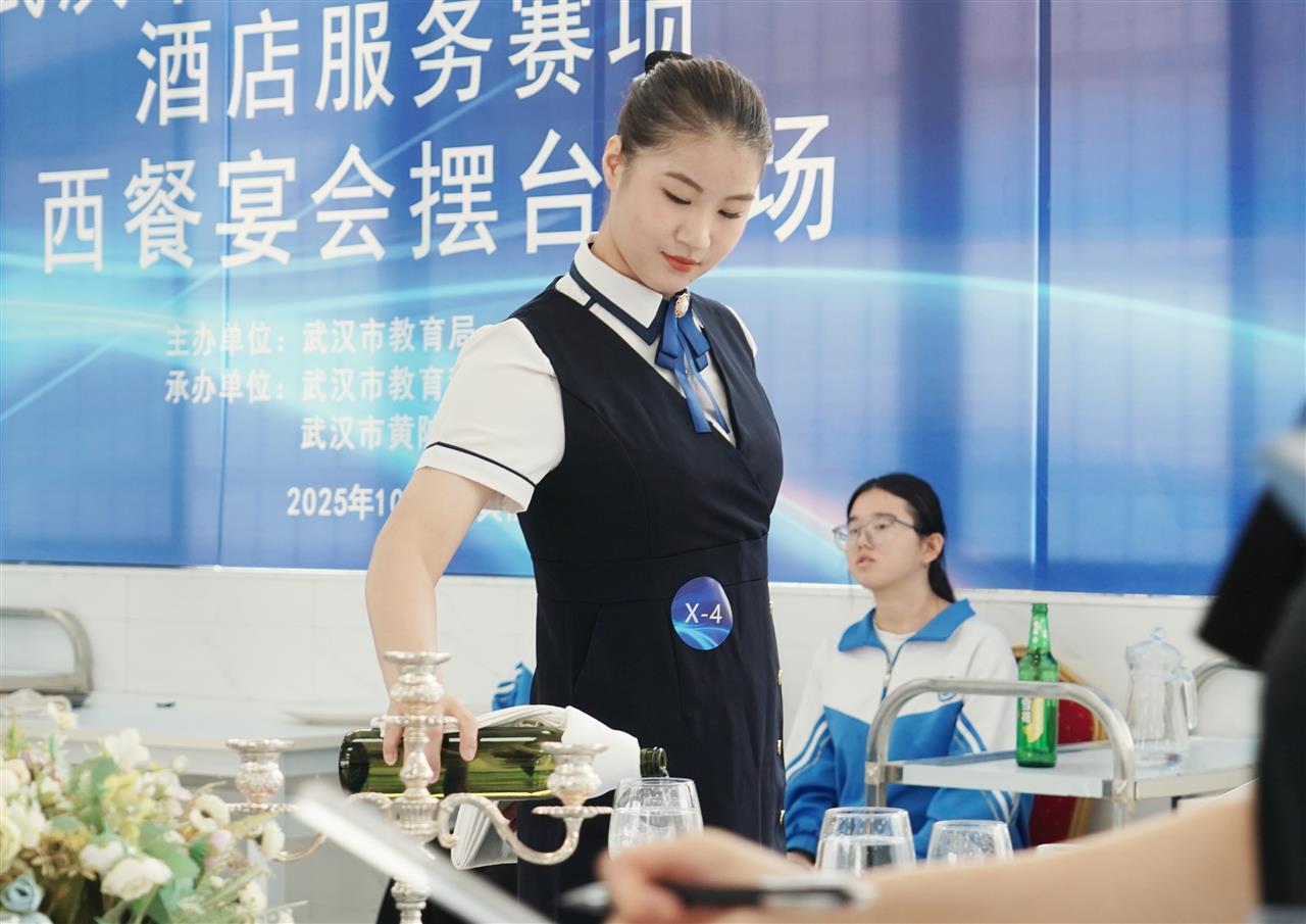 “客人点菜时有哪些要点?”“上菜时发现桌面不够摆放怎么办?”——这不是日常餐厅的服务难题,而是2025年武汉市中等职业学校技能大赛酒店服务赛项中的真实一问。10月16日至17日,该赛项在黄陂区职业技术学校举行,来自全市11所中职学校的选手同台竞技,在严谨的操作与细致的服务中展现职业教育的专业风采。