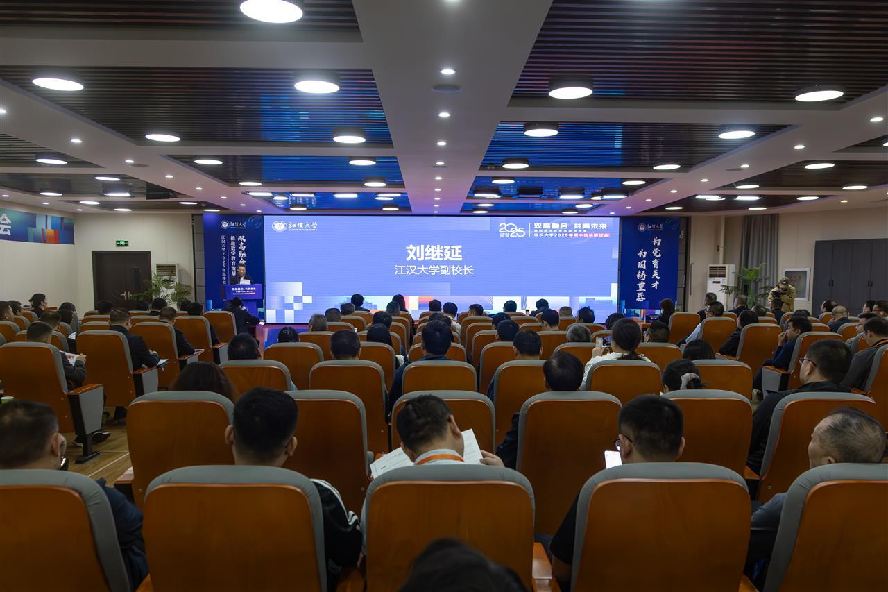 江汉大学副校长刘继延出席大会并致开幕词。刘继延代表学校欢迎与会嘉宾,概述江汉大学近年发展情况,包括办学历史、教学理念和科研育人成果。学校致力于科研能力贯通培养,通过开放实验室、推行导师制、设立学生项目等举措提升学生科研能力;通过平台建设发展学生特长,培养优秀科研人员、公务员和技术骨干。刘继延指出,推动“双高融合”是适应教育变革、赋能未来人才培养的必然要求,希望通过“高中筑基、高校赋能、协同育人”的新机制,共同构建数字教育的“6G”时代:课程共建联合开发人工智能课程;师资共有联合申报教研课题;实验室共享举办实验室开放日及微课题研究;生涯共导建设生涯规划指导中心;评价共进探索素质素养评价;文化共荣携手开展文体活动。