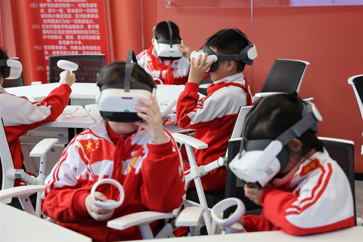 走进VR实训室,戴上特制眼镜的同学们仿佛“穿越”到了长征战场。他们神情专注,在沉浸式体验中重走革命征程,红色历史的厚重与革命先辈的精神力量直抵心灵,让红色教育真正入脑入心。