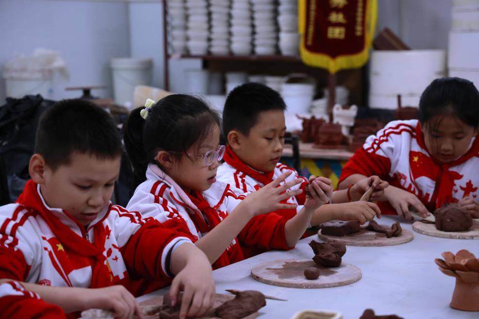 来到陶艺工作室,在高校师生的指导下,孩子们兴奋地动手揉泥、塑形、雕刻。他们充分发挥自己的创意,将一块块普通的泥巴变成了一个个充满童趣的泥塑作品,在实践中体验到了创作乐趣,涵养了审美素养与创新思维。整个研学过程中,高校实践导师、大学生志愿者与小学带队老师全程陪同,确保活动安全有序开展。