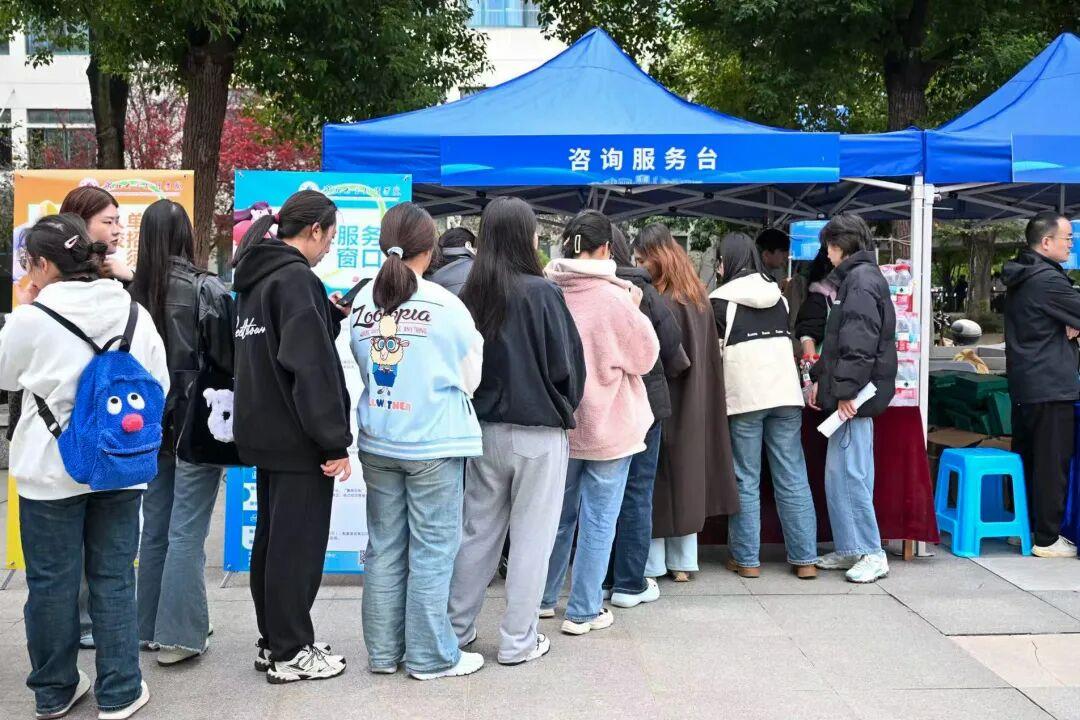 在双选会现场,大学生就业创业指导服务中心专门设立了咨询服务区,为学生解答各类政策问题,并提供简历优化、面试指导与签约流程答疑等贴心服务,帮助学生更好地应对求职挑战。