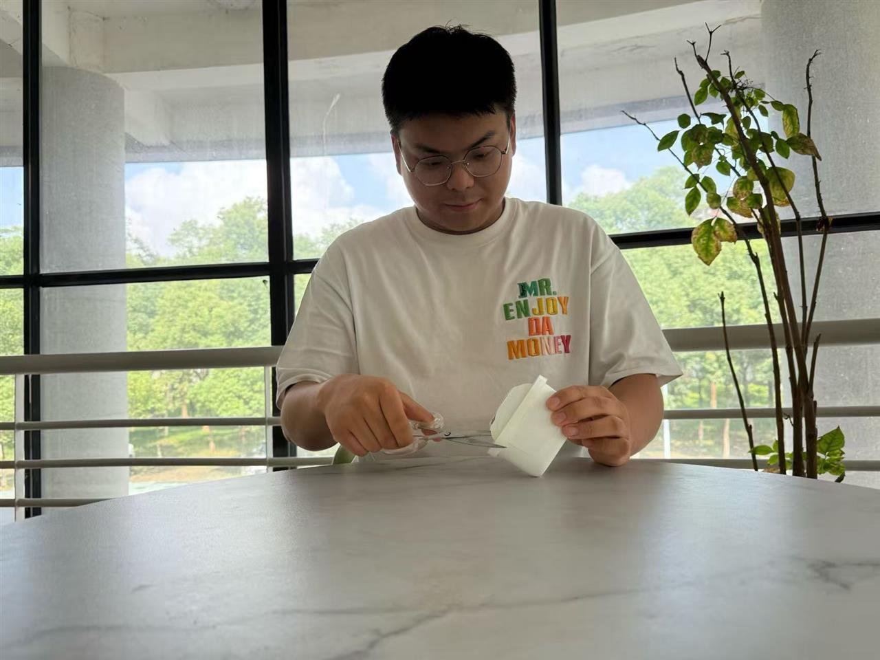 “这些蓝藻毒素可能会通过食物链回到人类餐桌,而你们现在看到的每滴污水,都可能是未来某个孩子的眼泪。”李皓辰与环保科研的结缘,源于大一环保社团活动中的一次特殊经历。当时,老师带着他们参观水质检测实验室,将家乡的河水样本倒入培养皿后,显微镜下出现了游动的发光藻类。老师的话像一根刺扎进他的心里,也让他猛然意识到,环保与每个人息息相关的现实责任。从那时起,他便坚定了投身水污染治理研究的决心,通过学校”本科生导师制”进入李强老师的实验室,专注于高级氧化技术处理抗生素废水的研究。