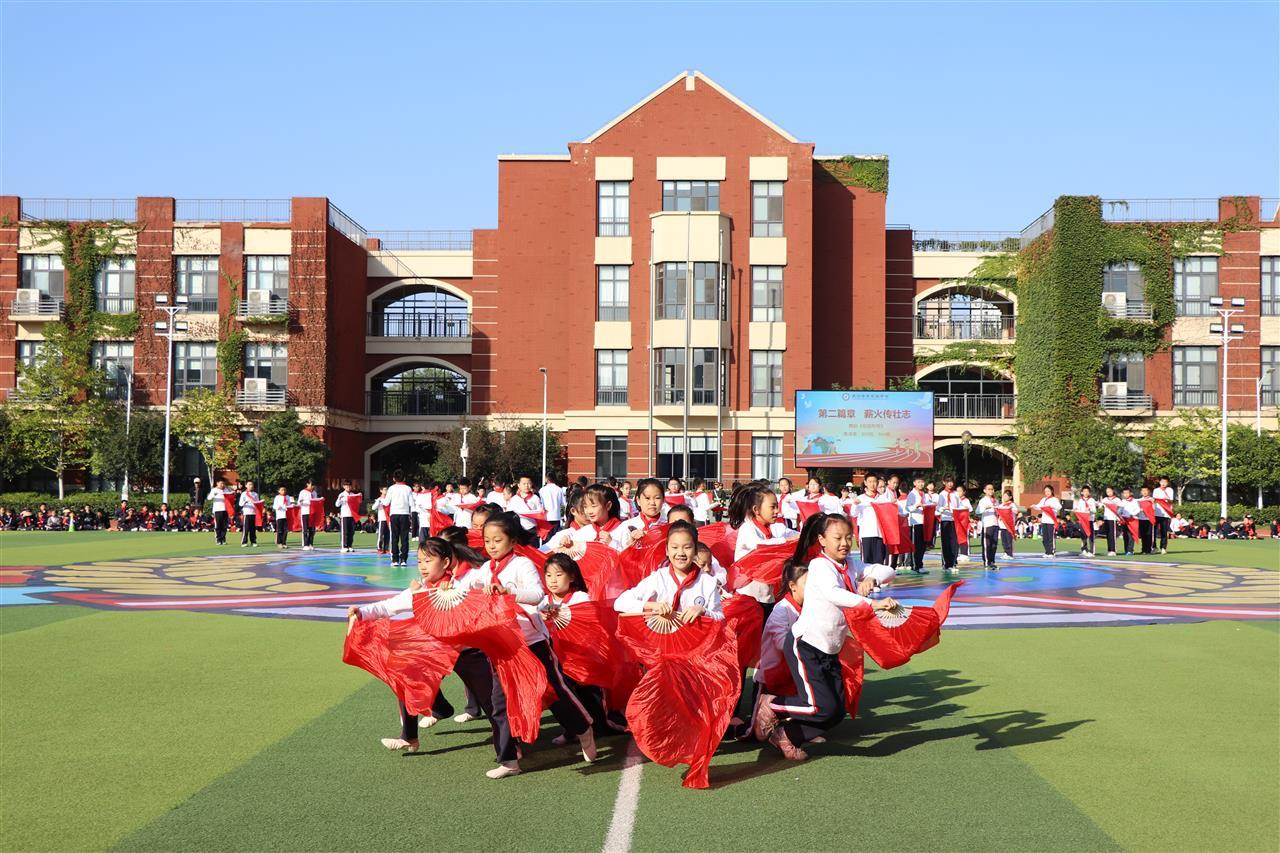 整场活动的氛围在火炬传递环节达到高潮。象征着“光明、团结与希望”的圣火,依次由各年级学生代表与学工处主任舒慧君、党支部副书记朱青、校长助理刘光元、副校长杨光荣等校领导接力传递。最后,由首席督学林新堤点燃主火炬盆。熊熊火焰不仅代表了奥林匹克精神,更象征着学校精神与教育理念的传承。
