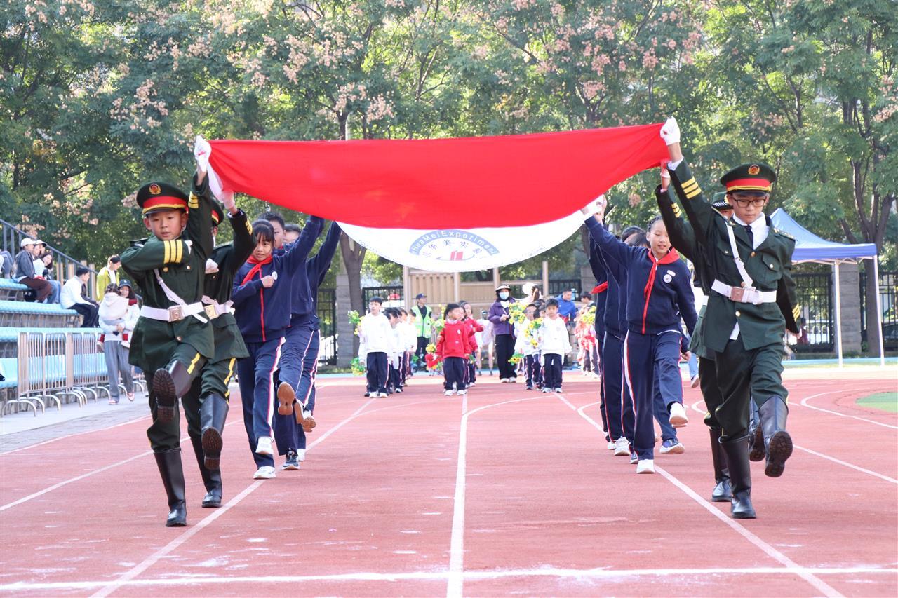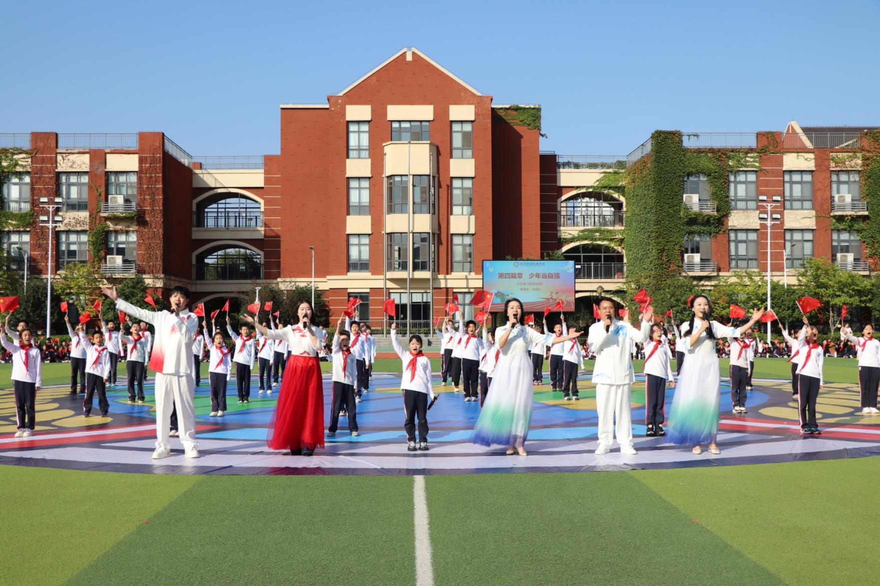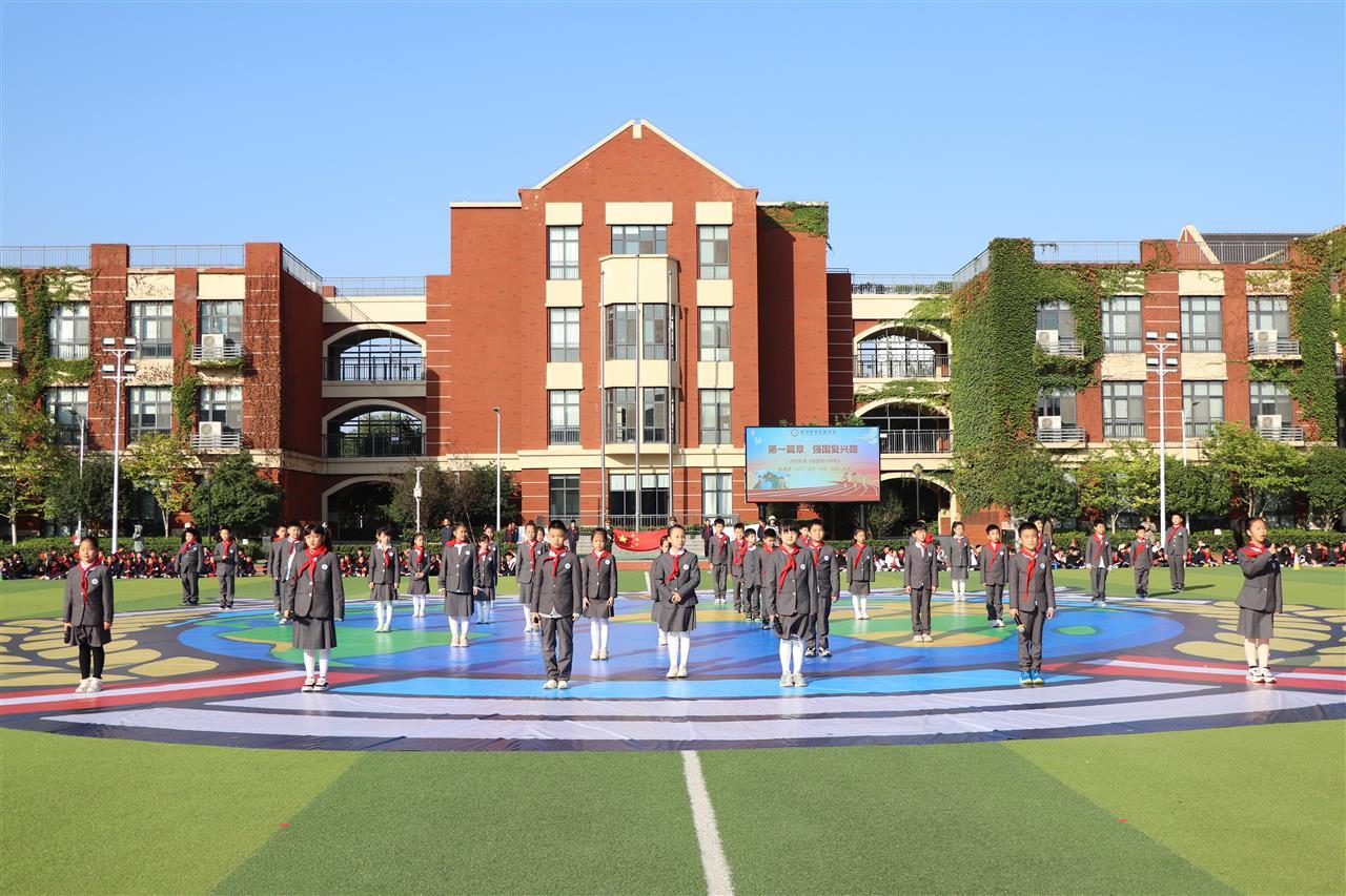 四年级师生以深情朗诵《强国复兴有我》回望了从“两弹一星”到“神舟飞天”、从“蛟龙探海”到“高铁纵横”的强国征程,铿锵誓言在操场回荡。