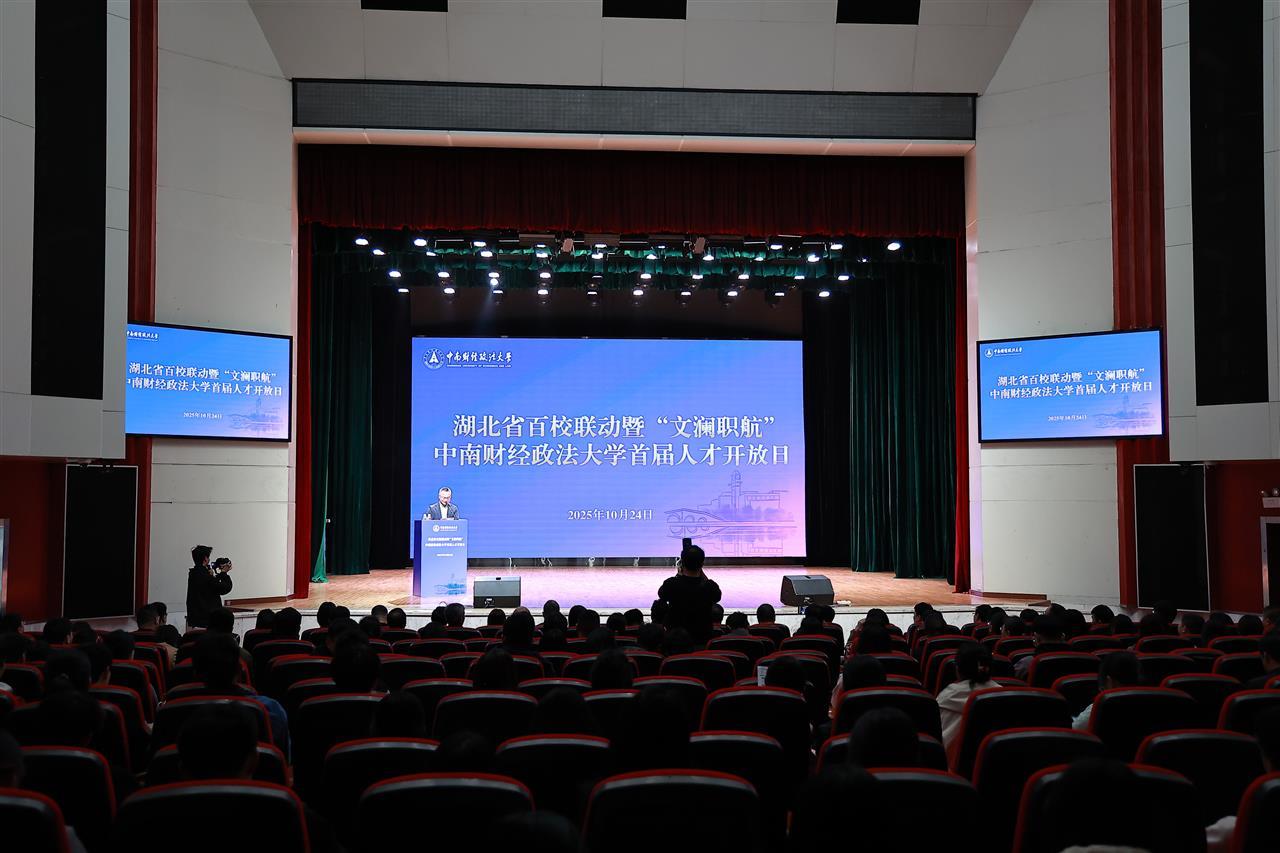 10月24日,湖北省百校联动暨“文澜职航”中南财经政法大学首届人才开放日在该校南湖校区举行。湖北省政府教育督导室副主任督学王文森,湖北省教育厅高校学生处处长姜永生,中南财经政法大学党委书记侯振发,校长、党委副书记朱方伟,党委副书记陈狮出席,200余家用人单位齐聚一堂共同参加开放日活动。