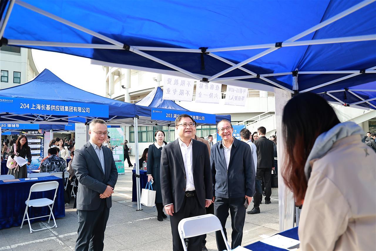 侯振发、朱方伟、陈狮一行还巡视了双选会现场,与湖北联投、三花控股、格力电器、宇通集团等招聘单位代表以及师生进行了亲切的交流。