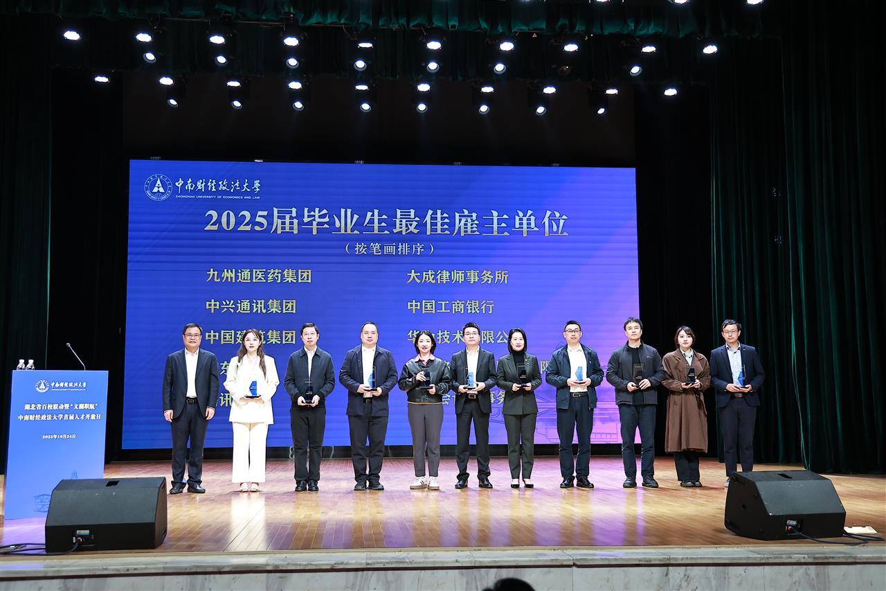 中南财经政法大学2025年就业工作鸣谢单位获奖代表、杭州市人才集团有限公司党委副书记、副董事长、总经理田佰辰表示,用人单位对中南财经政法大学毕业生的满意度一直保持在高水平,越来越多的中南财经政法大学优秀学子在国内外各地取得了卓越成就。欢迎中南财经政法大学的广大学子到杭州促进交流、享受生活、谋求发展,杭州市人才集团也将与中南财经政法大学携手,共同开启校企合作的新篇章。