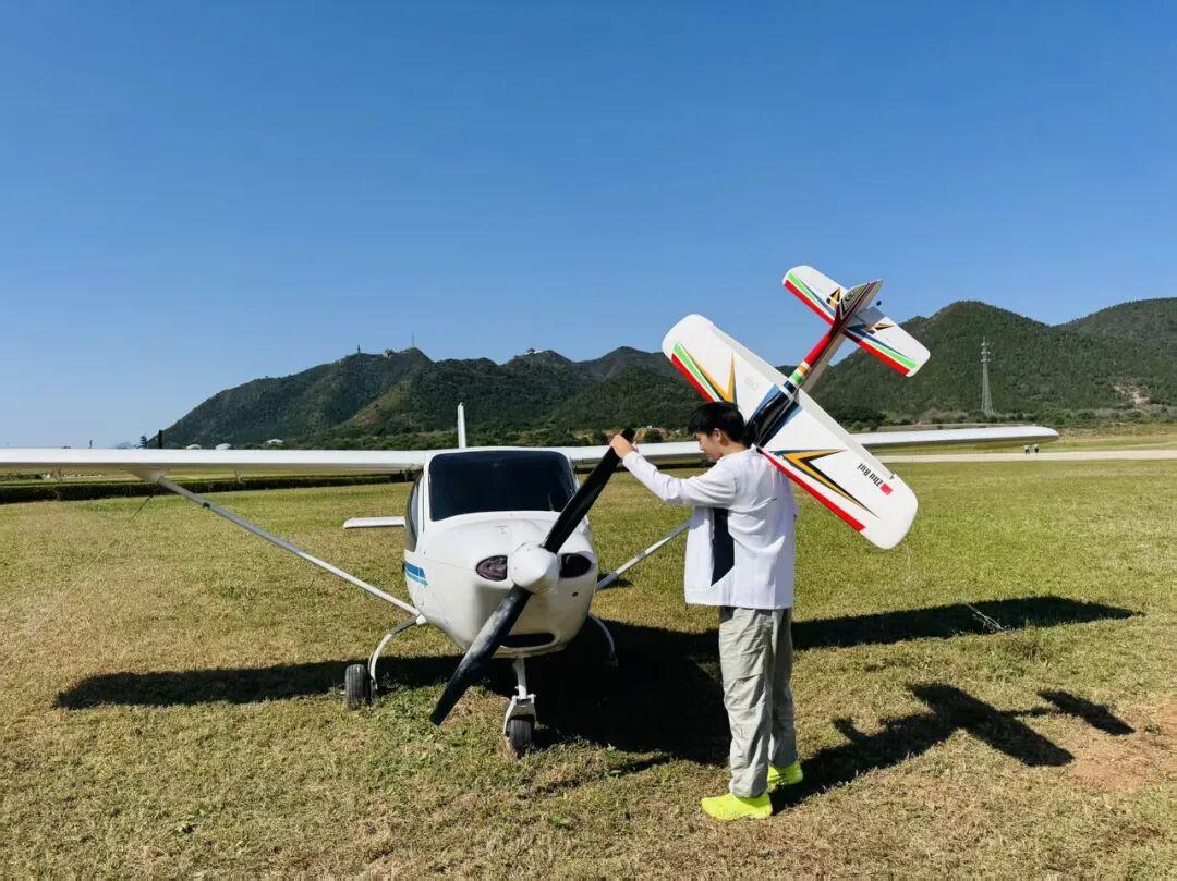 一开始,朱睿飞的是更小更容易操控的泡沫机,后来慢慢换上了“50机”,如今已经是“60机”,轻木材质,记者掂了掂分量,大概还不到500克,配上电池等各种零部件,价格要2万多元。