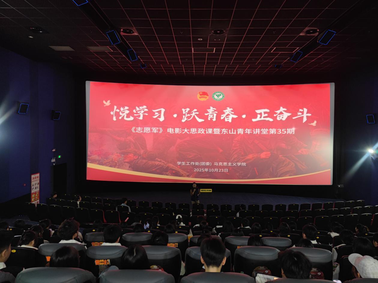 为筑牢青年理想信念,厚植爱国主义情怀,10月23日,湖北三峡职业技术学院学生工作处、校团委联合马克思主义学院,创新打造了一堂沉浸式“影院思政课”。学生工作处、马克思主义学院部分教师,学校第五期“青马工程”培训班、2025年“灯塔计划”团干部培训班,校院两级学生骨干等260余名师生齐聚影院,共同观看爱国主义影片《志愿军:浴血和平》,于光影叙事中感悟英雄史诗,在思想交流中明确青春责任。