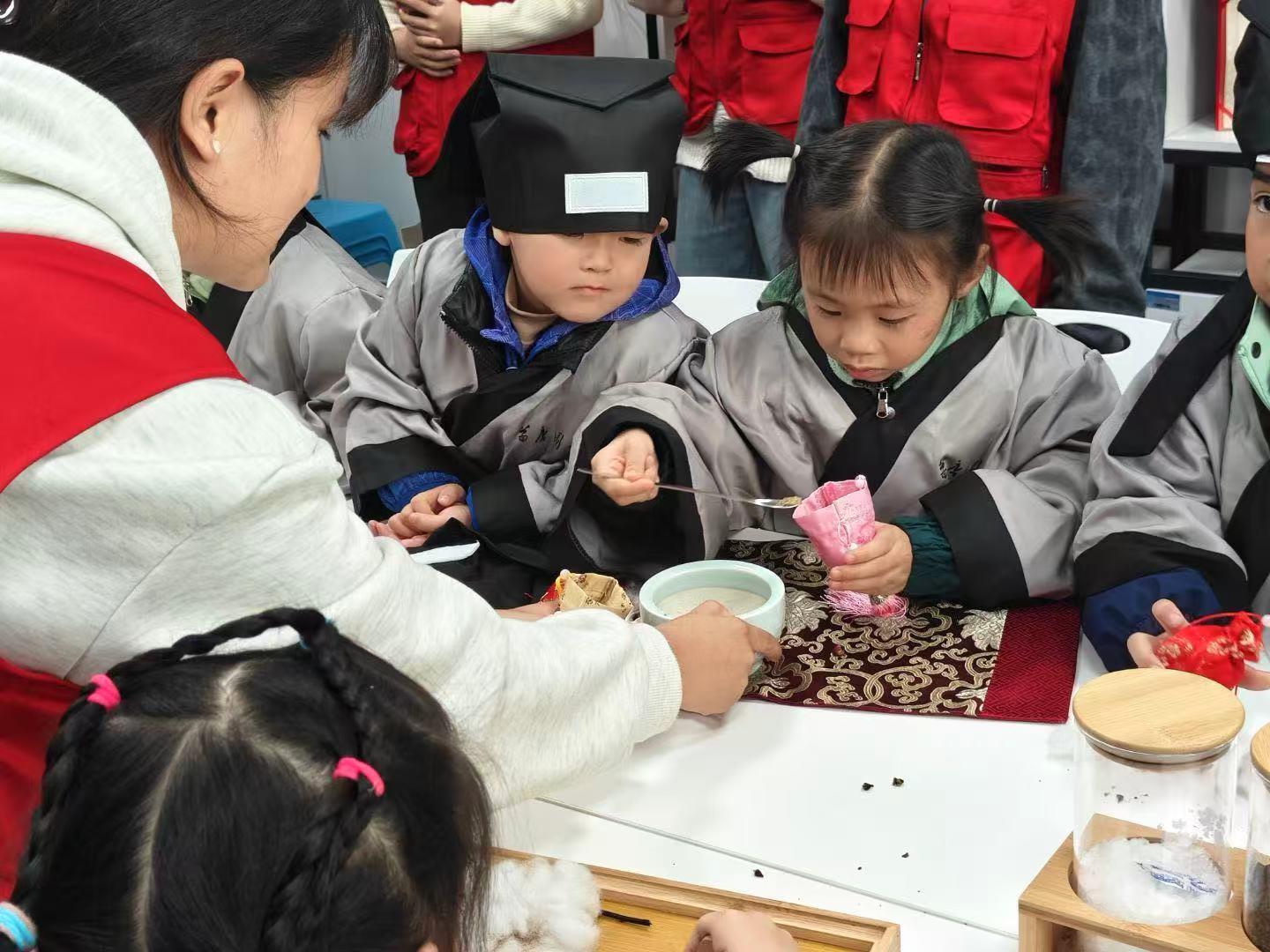 当人工智能邂逅千年中医药,会擦出怎样的火花?当孩子们亲手制作驱蚊香囊、品尝养生药茶时,又能收获怎样的新奇体验?10月22日,在第34个“世界传统医药日”来临之际,长江职业学院在“百校千馆”平台——中医药博物馆(中药文化传承创新中心)里,举办了一场别开生面的中医药文化开放日活动。鄂州岳陂小学42名小学生与曹岭蓝天幼儿园20名儿童走进大学校园,在沉浸式趣味互动中,开启了一场跨越传统与现代的岐黄启蒙之旅。