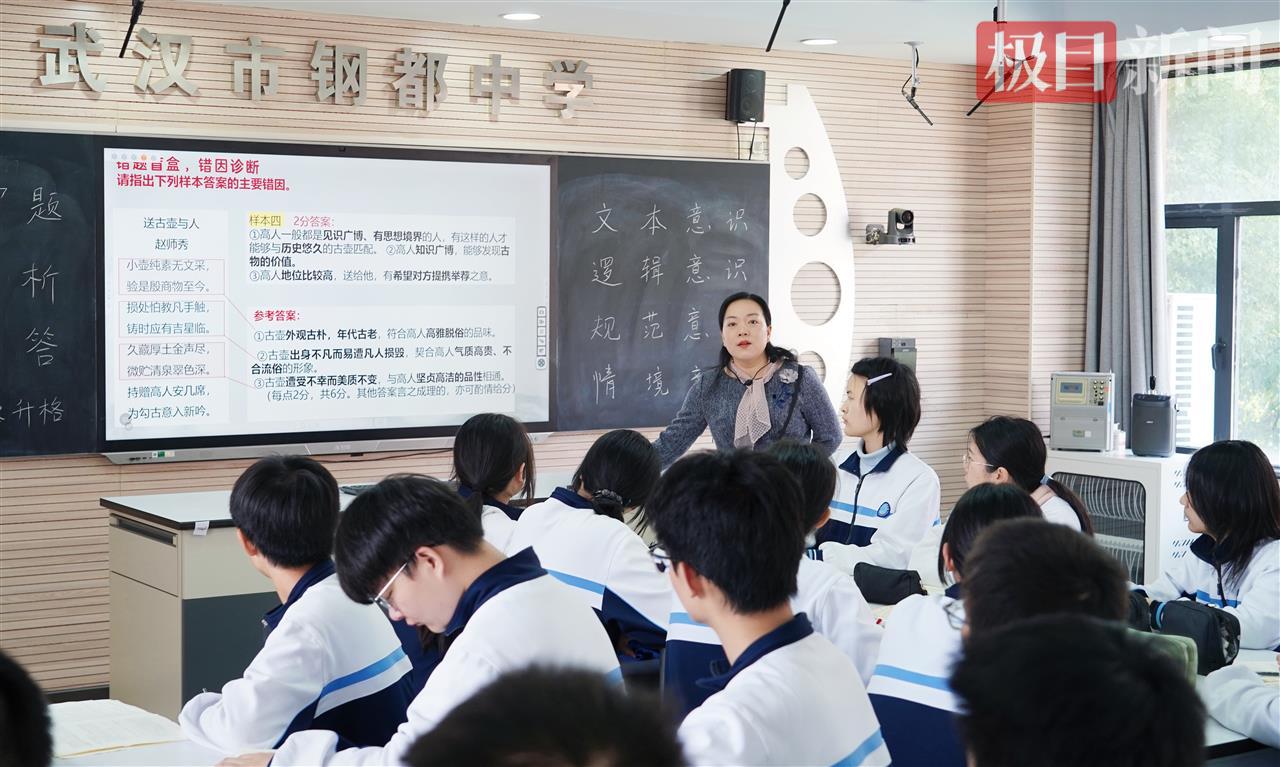 “找准病因是我们提升的第一步。”10月24日下午,武汉市钢都中学录播室内,一场特殊的语文试卷讲评课正在进行。舒秀梅老师轻点屏幕,AI工具“豆包”随即对学生的答题样本展开精准剖析:“偏离核心分析对象”“缺乏文本支撑”……一针见血的诊断,让在场学生恍然大悟。
