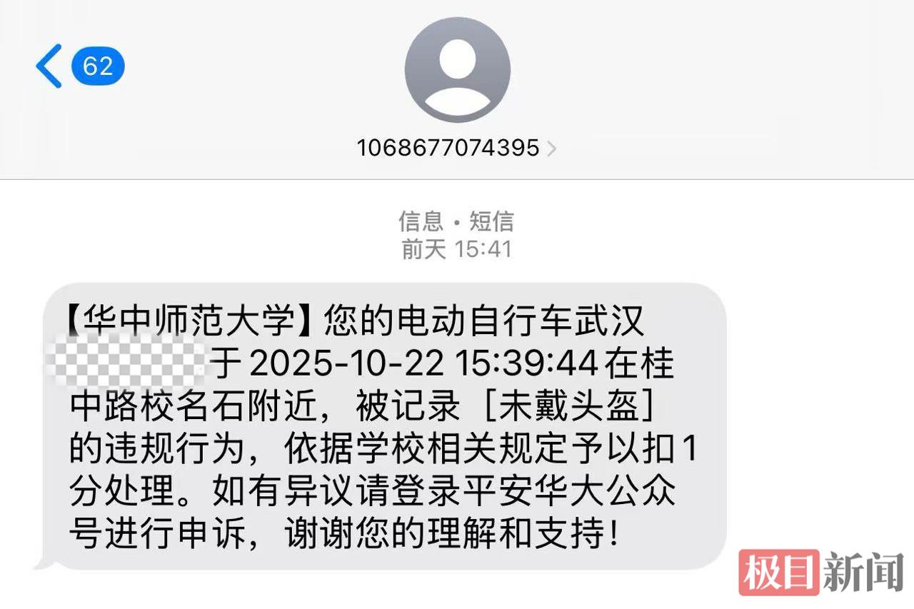 “我之前因为没戴头盔被拍过,刚停好车短信就来了——‘您的电动自行车被记录‘未戴头盔’的违规行为,依据学校相关规定予以扣1分处理。”大三学生谭晓敏边说边打开手机,“现在大家骑车都规矩多了,毕竟谁也逃不过‘电子眼’。”