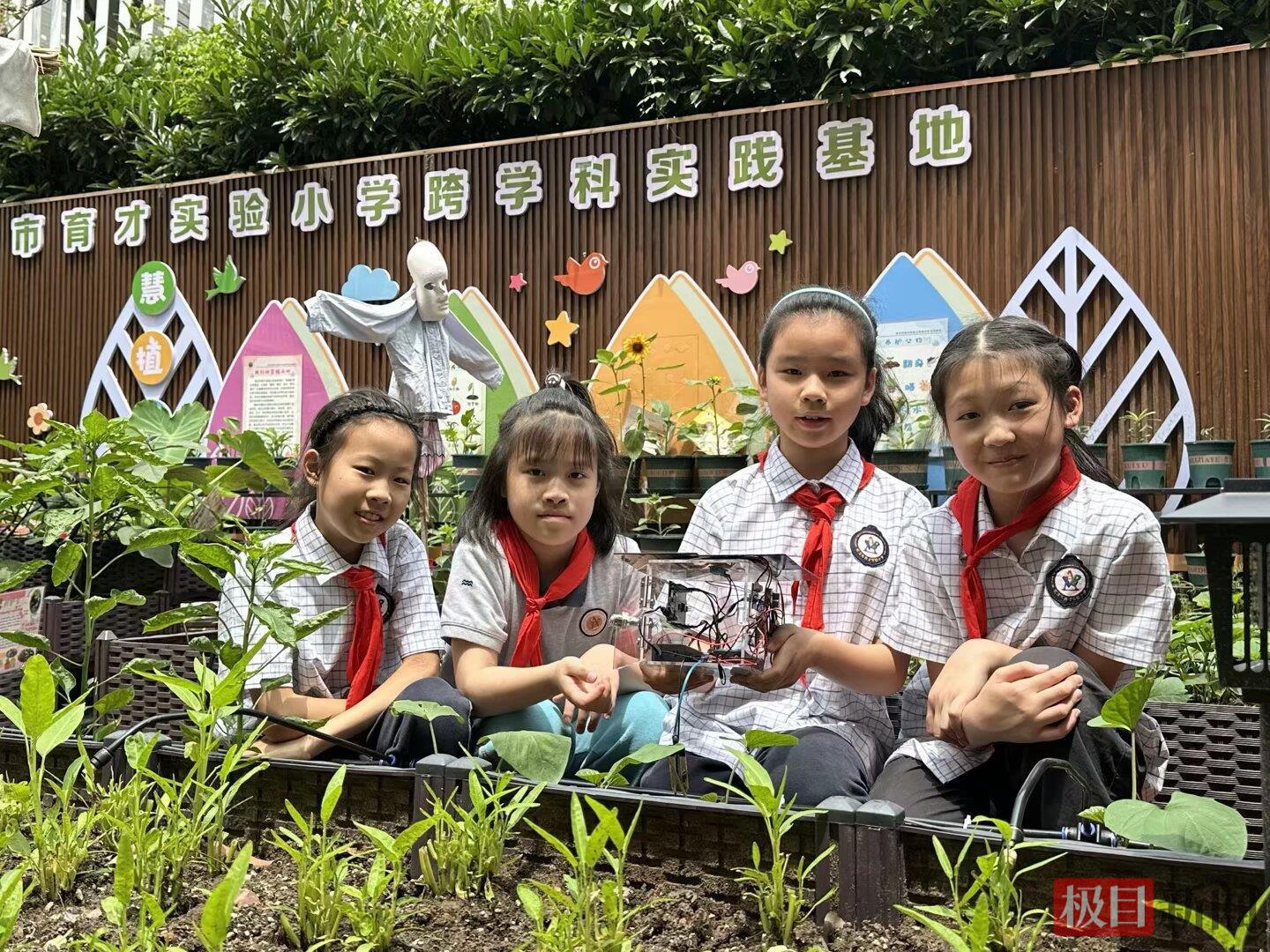 育才家园小学的“趣植园”里,胡萝卜、莴苣等幼苗长势喜人,各班“护绿小分队”轮流管护,学生们还会写下观察日记,将劳动与写作、科学知识相结合;育才实验小学的“慧植天地”更是以“五育融合”为核心,通过四季课题研究、智能农场升级、跨校联盟共建等,让劳动教育与科技、艺术碰撞出别样火花,成为“双减”背景下实践育人的典范。育才行知小学则开辟了800平方米的空中生态科普教育基地,为学生认识植物、学习种植技能提供了有效场所。