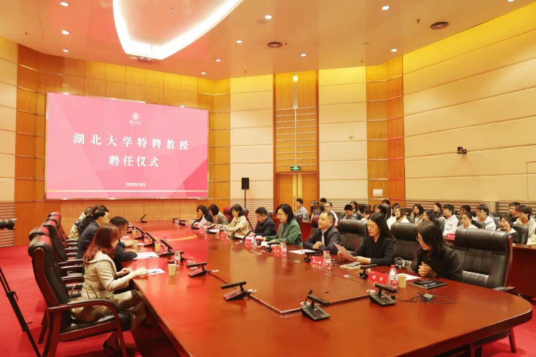 校长刘建平,校党委常委、副校长张冬卉出席聘任仪式,刘建平为陈栋梁教授颁发特聘教授证书。陈栋梁教授表示,将全心全力投入湖大高质量发展,服务湖北大健康产业,聚力湖大生物学一流学科建设,努力在平台建设、人才培养、服务社会等方面取得标志性成果。