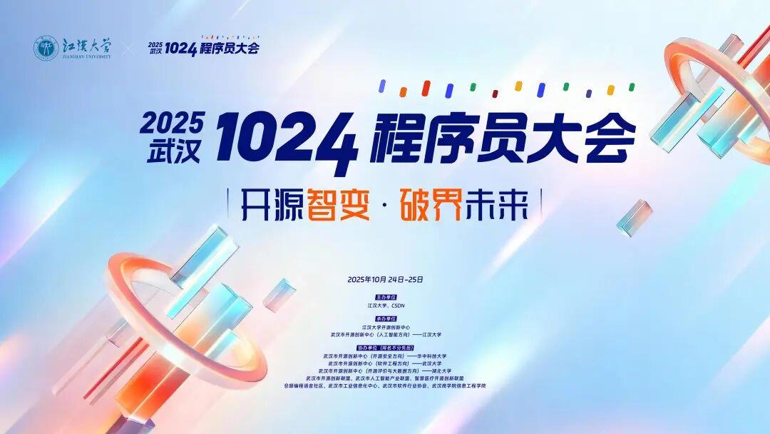 10月24日至25日,以“开源智变·破界未来”为主题,2025武汉•中国1024程序员大会在江汉大学圆满举办。大会由江汉大学与CSDN联合主办,围绕四大方向开设专场活动,并同步开展AI大模型体验活动、智能体开发大赛、精品面试会等特色环节,全面展现人工智能与开源技术在教育、科研与产业融合中的创新实践与时代价值。这是一场广大程序员共同的节日盛典,也是武汉在“AI+开源+教育”领域的一次高能级交流盛会,汇聚来自全国高校、科研院所、开源社区及知名企业的专家学者与青年开发者超千人,线上观看热度近三百万。